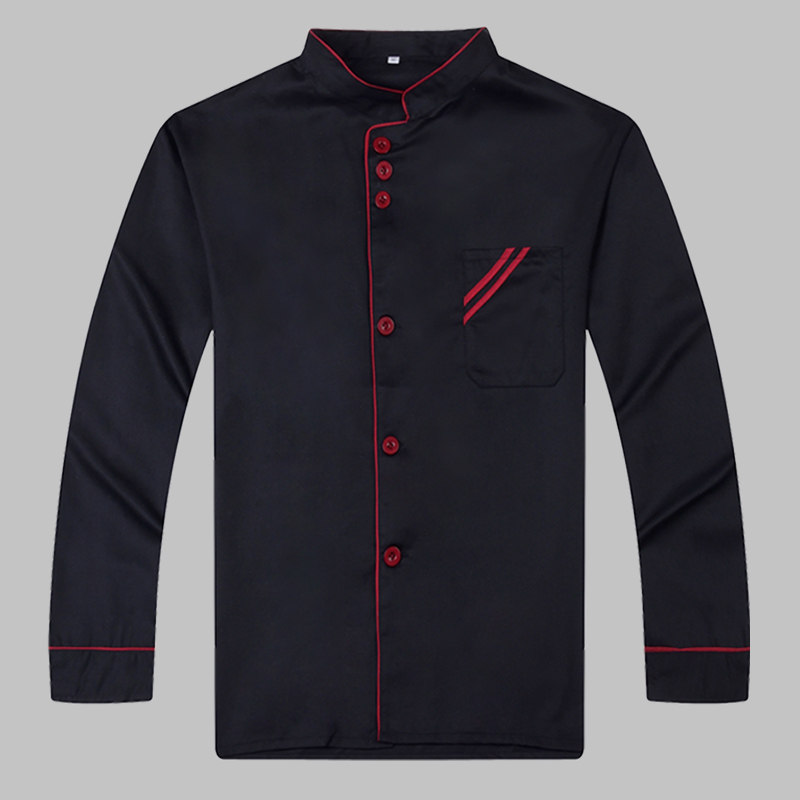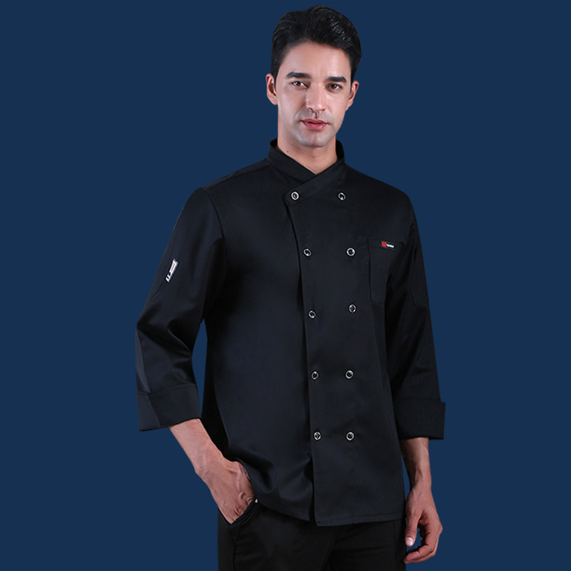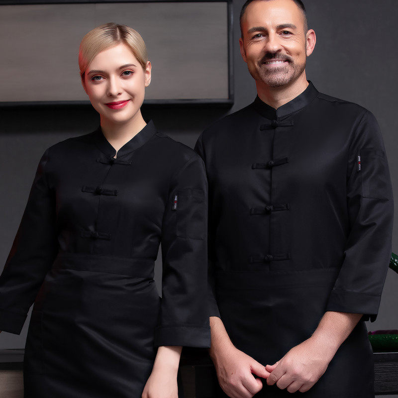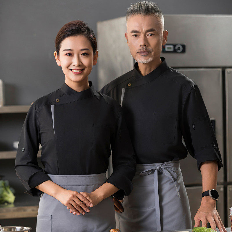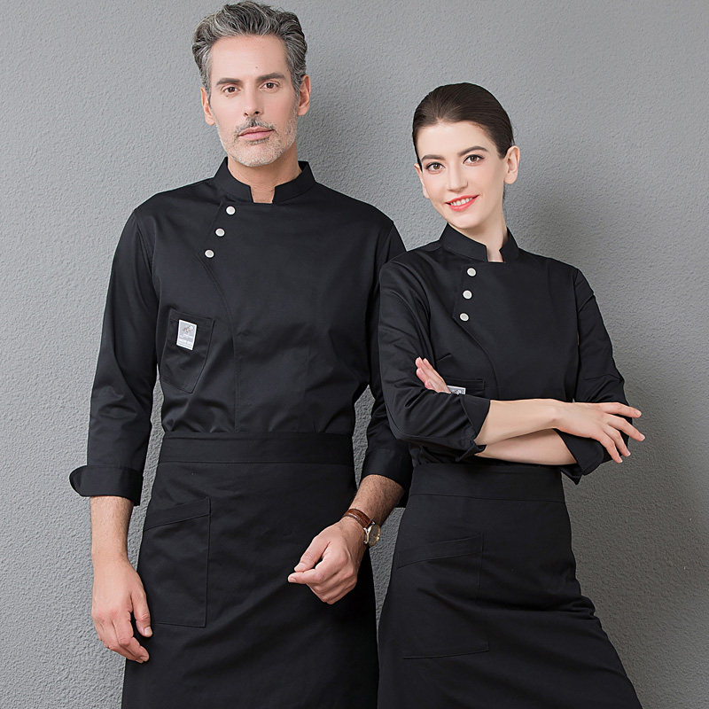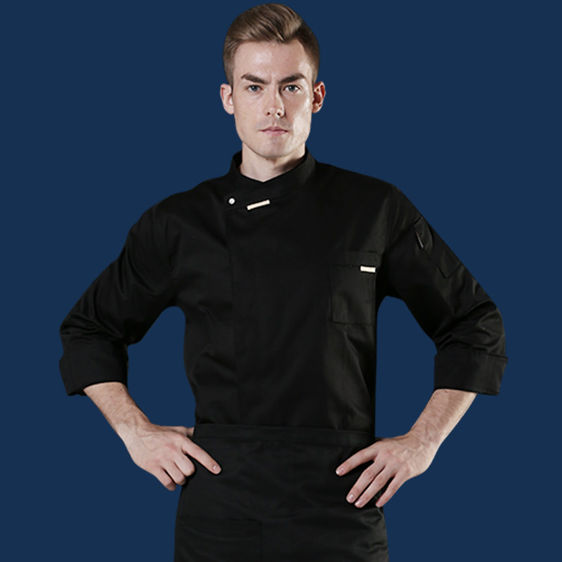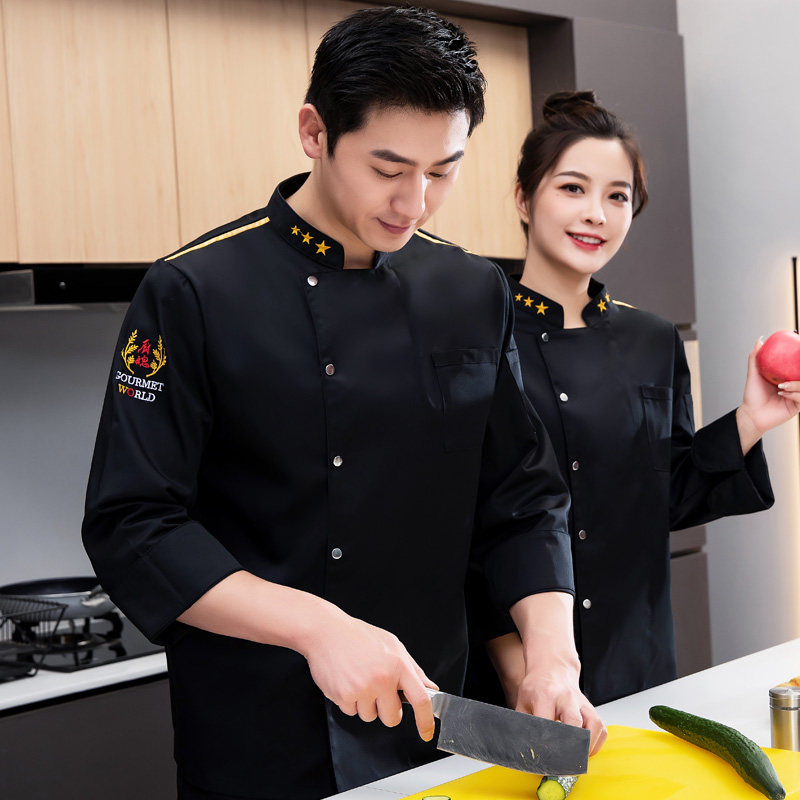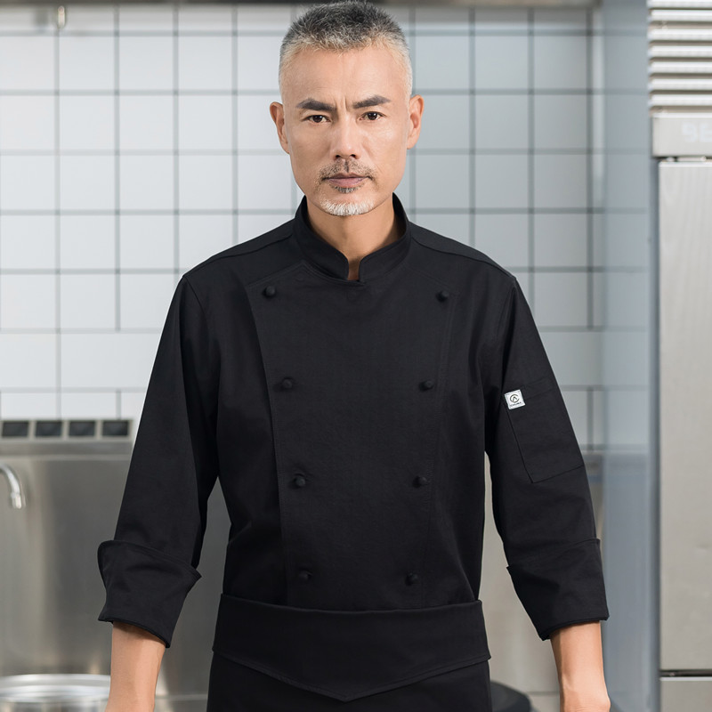 高端酒店宾馆厨师长工作服男纯棉饭店西餐总厨黑色长袖秋冬季定制