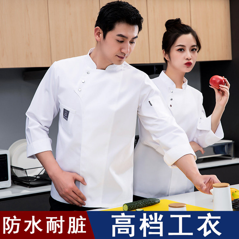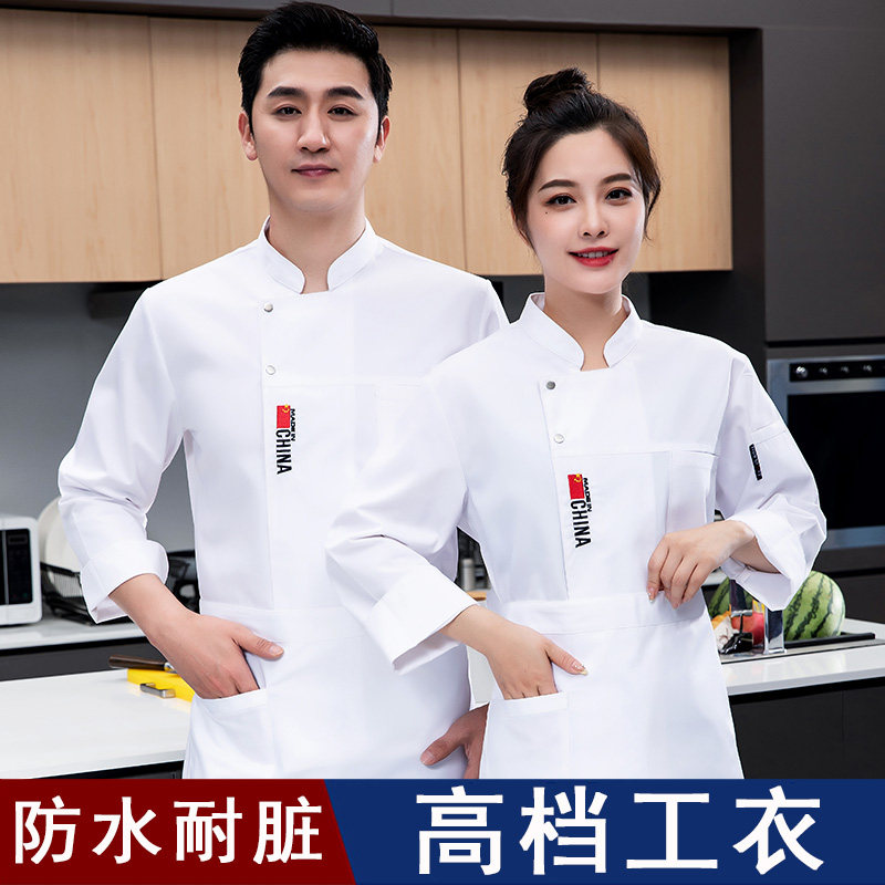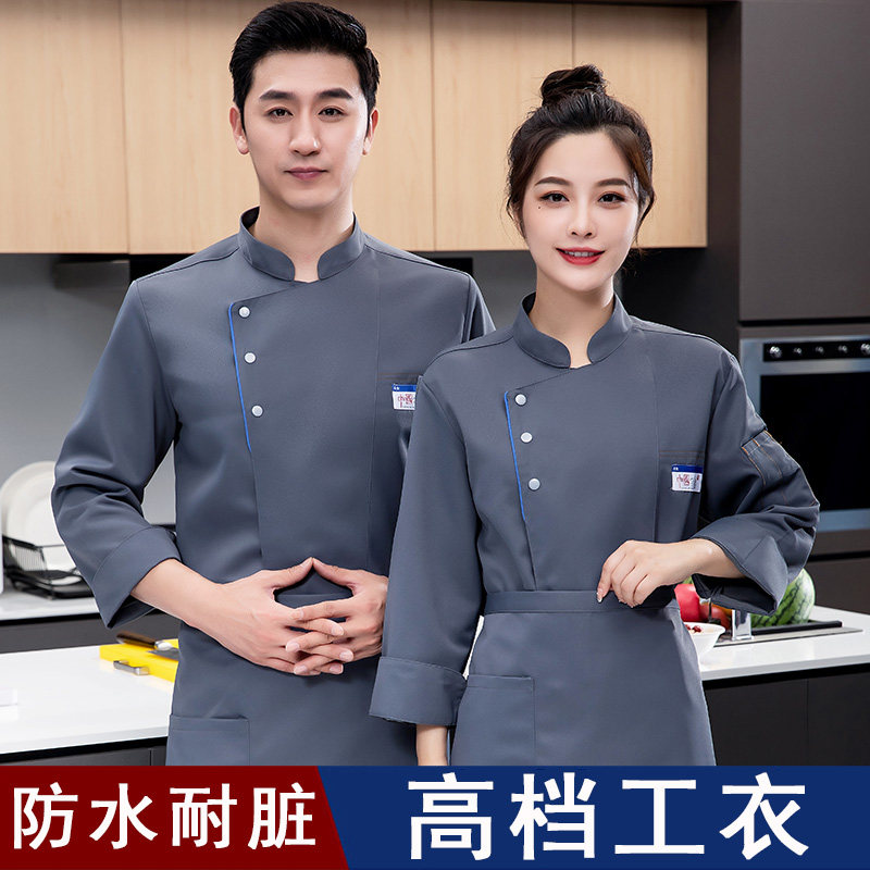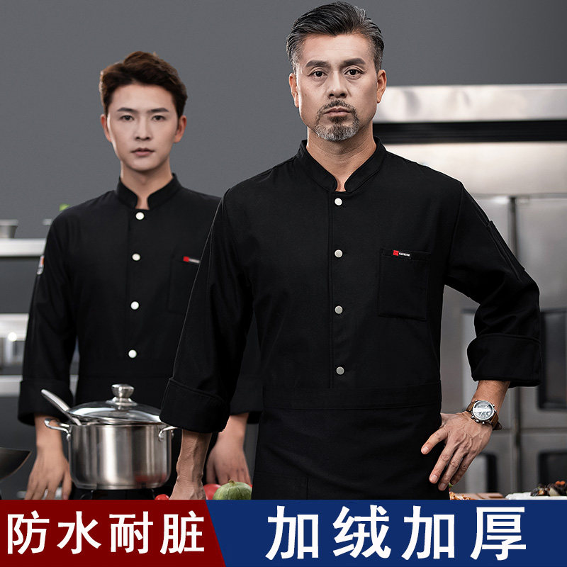 高档厨师工作服长袖男女秋冬季餐饮饭店食堂厨房餐厅大码防水服装