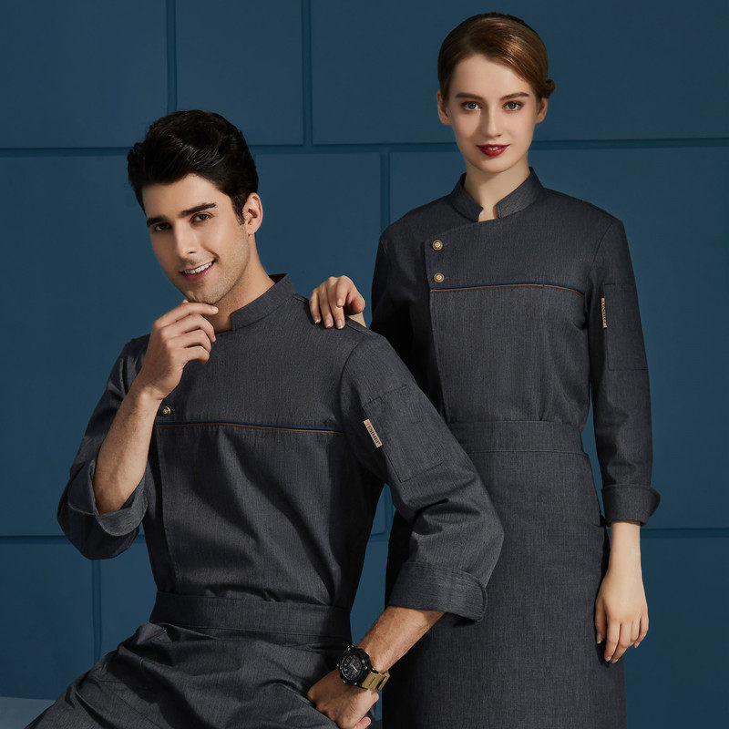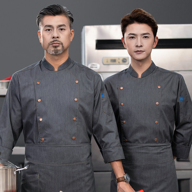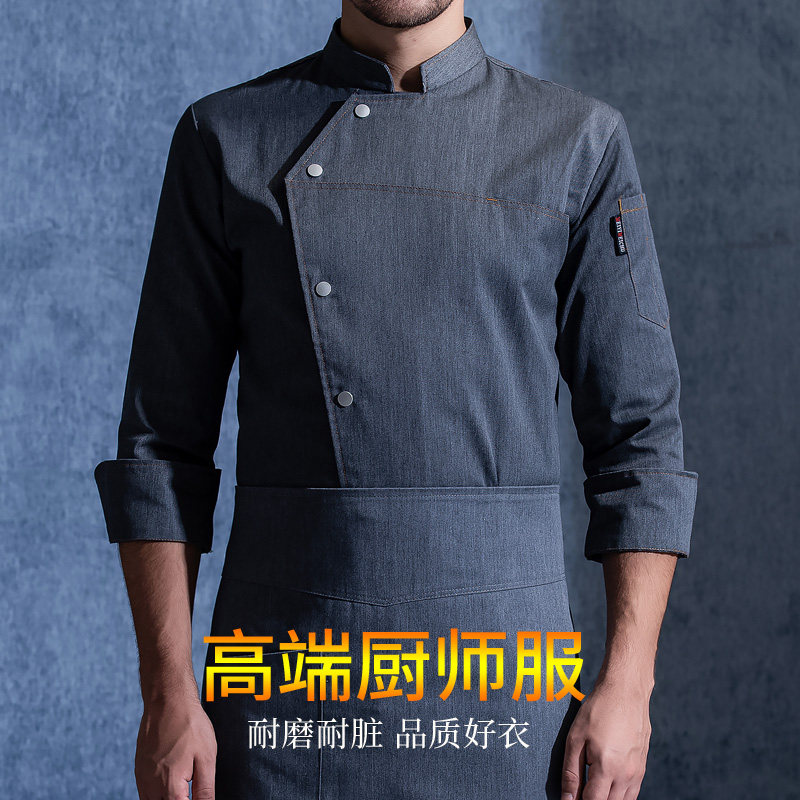 谢霆锋同款厨师服长袖饭店总厨房西餐锋味牛仔工作服加厚秋冬定制