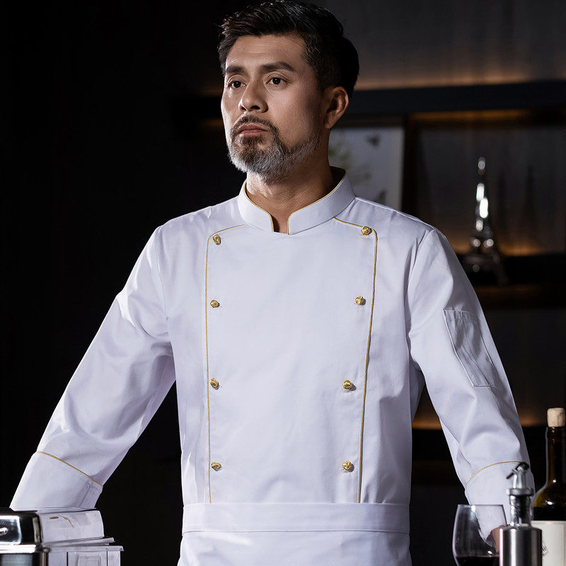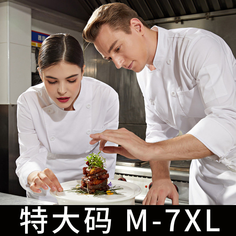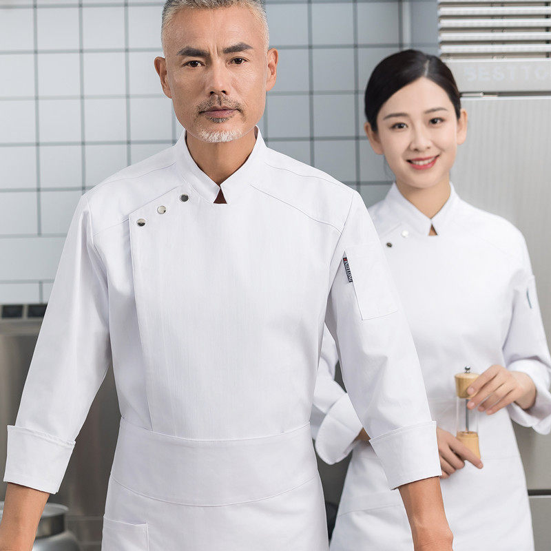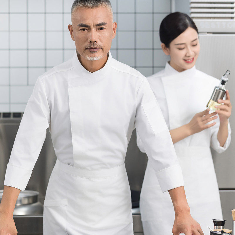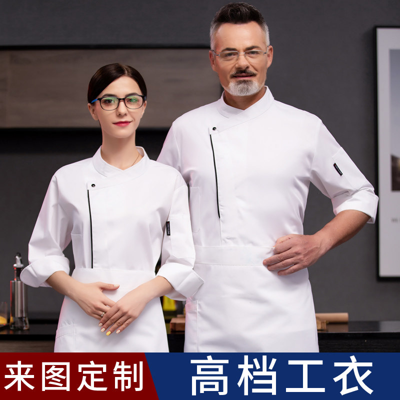 酒店高端厨师服长袖烘焙蛋糕店食堂饭店厨房白色工作服纯棉秋冬季