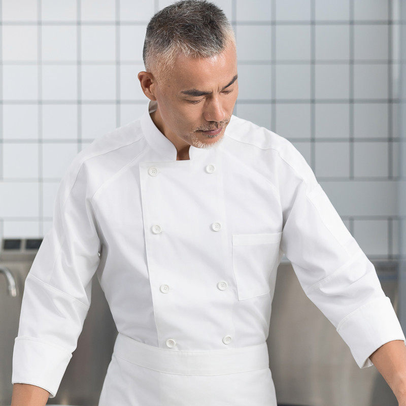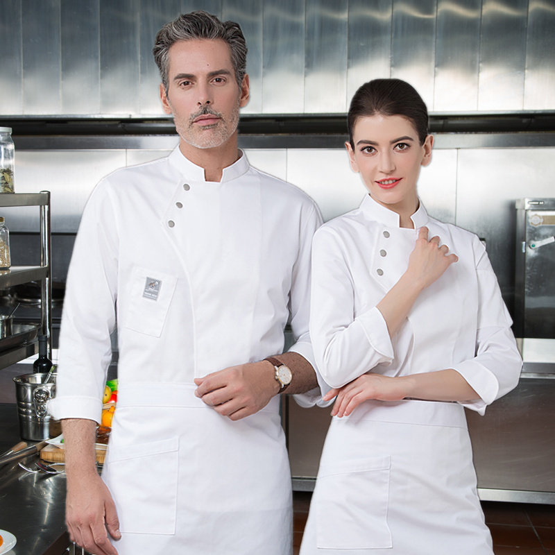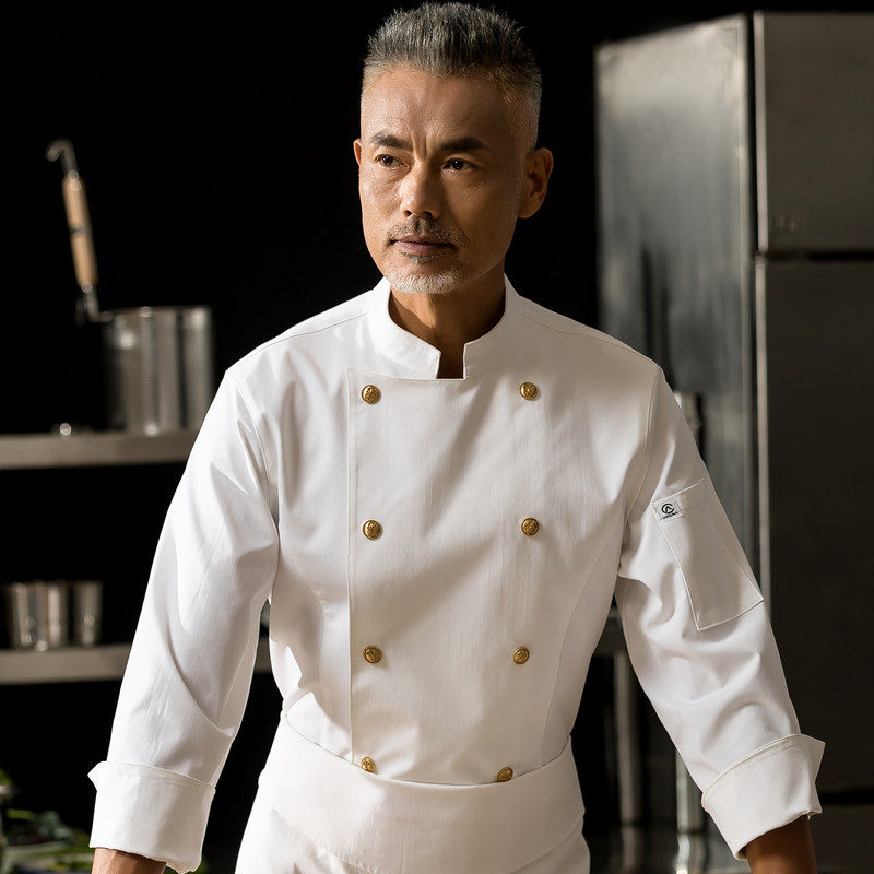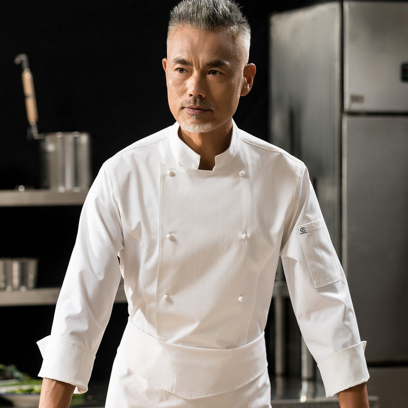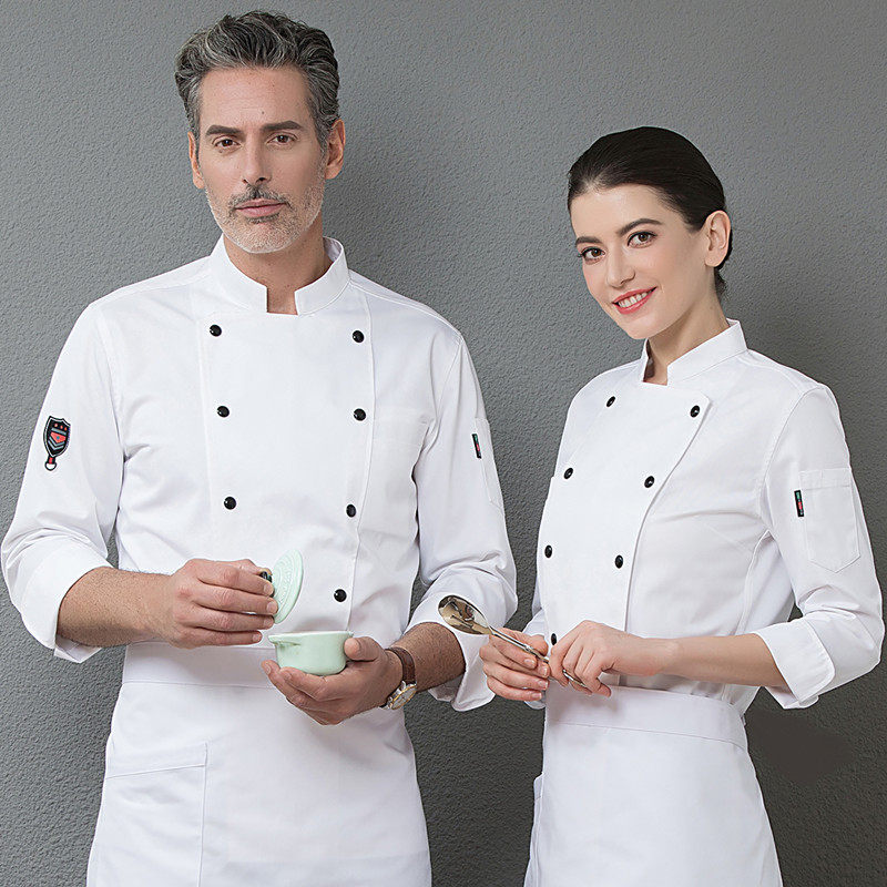酒店高端厨师服长袖烘焙蛋糕店食堂饭店厨房白色工作服纯棉秋冬季