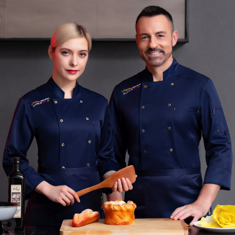多米来厨师工作服秋冬长袖男酒店厨房西餐餐饮厨师长服工装可定制