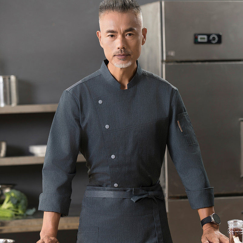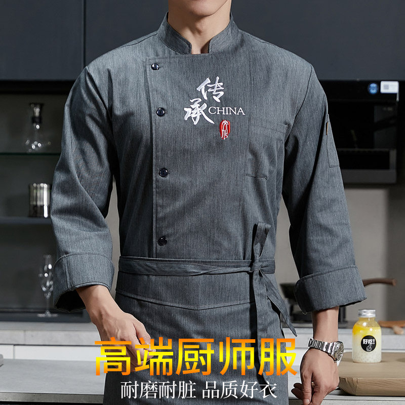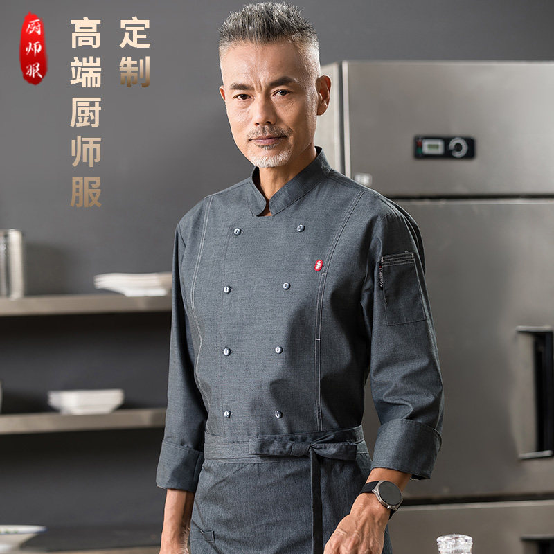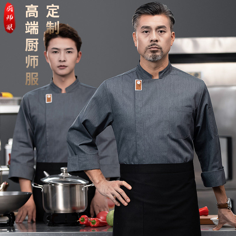 酒店高端厨师长工作服长袖灰色饭店烘焙蛋糕厨房食堂秋冬定制新品