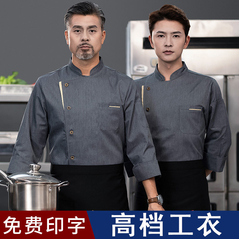 高端灰色厨师工作服长袖厨房后厨食堂餐厅饭店工衣男女餐饮秋冬装