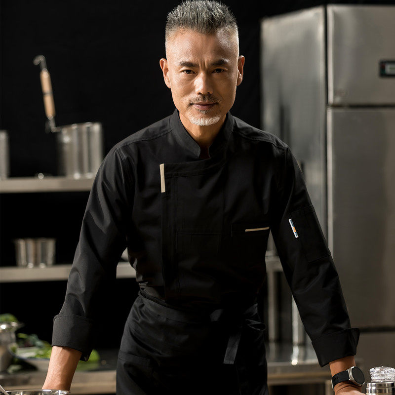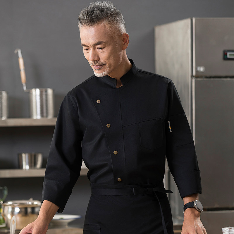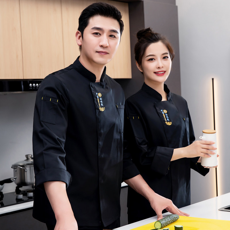 酒店高端厨师长工作服长袖饭店火锅西餐厅日料男总厨房黑色秋冬装