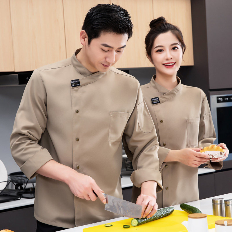 厨师工作服男长袖秋冬装餐厅后厨房糕点烘焙火锅饭店餐饮服务员女