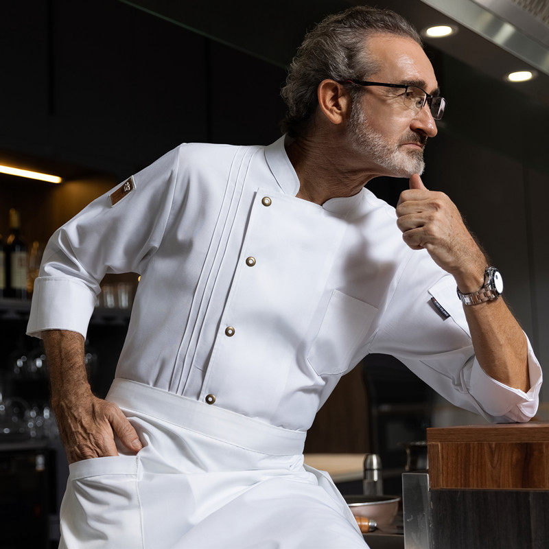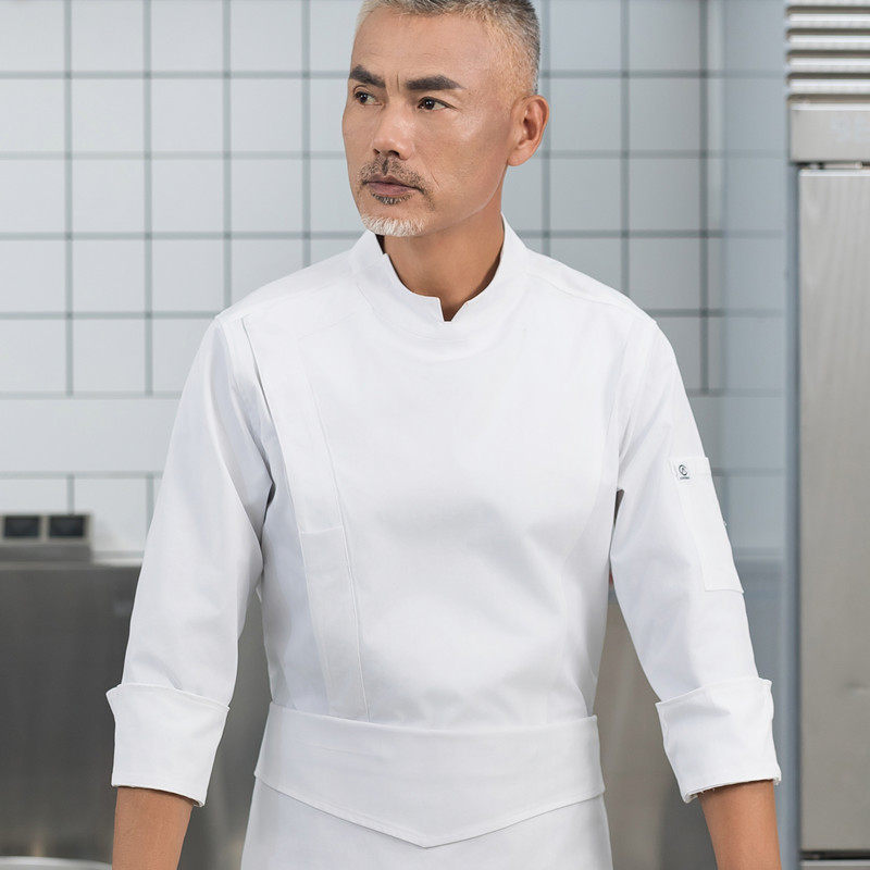 星级西餐厅高端饭店厨师长工作服长袖酒店行政总厨男秋冬白色弹力