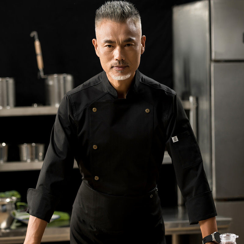 谢霆锋同款厨师服男纯棉长袖黑色酒店高端西餐总厨日料工作服秋冬