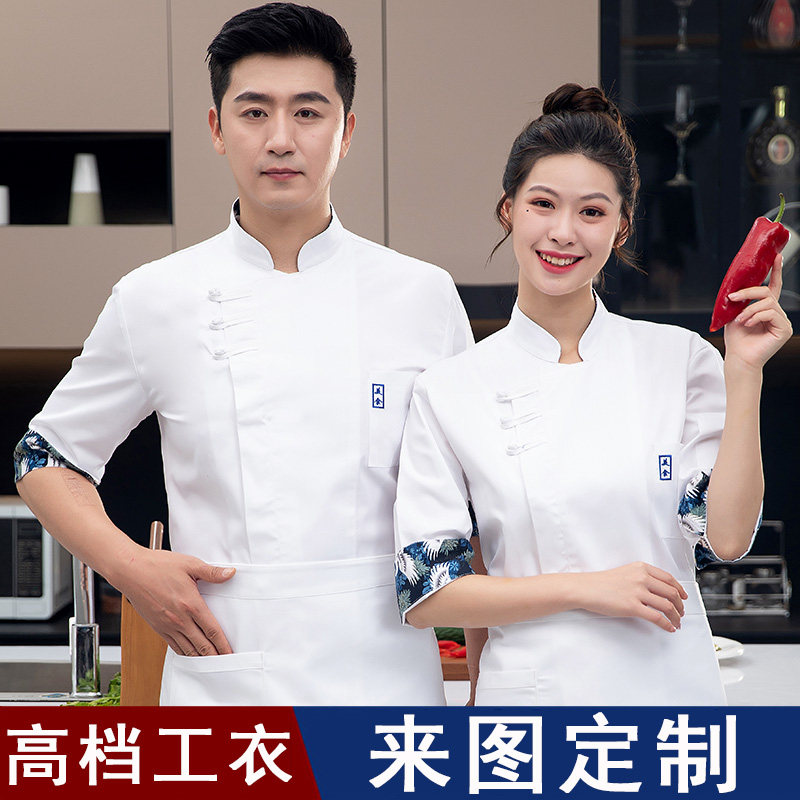 高档餐厅厨师工作服男七分袖秋冬中式火锅饭店餐饮厨房中袖工衣女