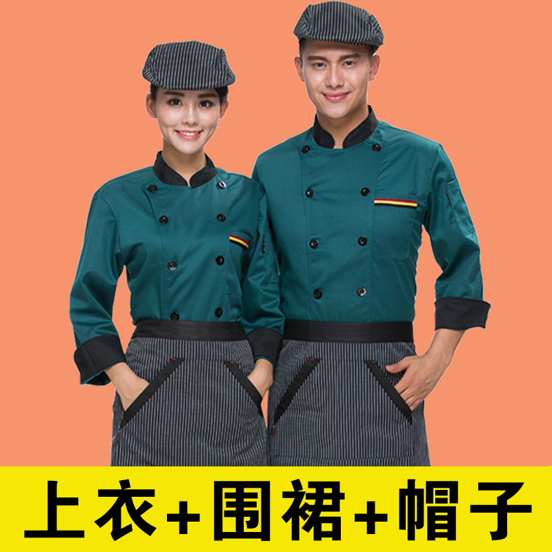 厨师工作服男长袖秋冬餐厅食堂厨房烘焙火锅饭店餐饮服务员套装女