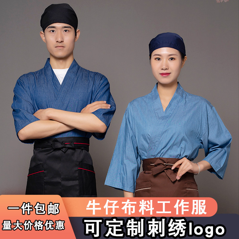 牛仔布日料店厨师服日式工作装餐厅工作服寿司料理男女服务员服装