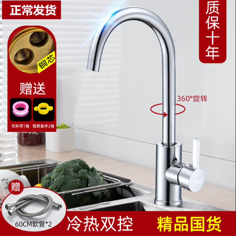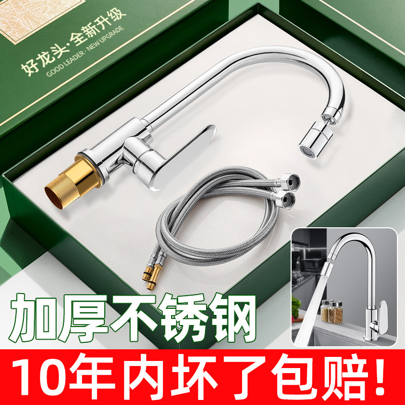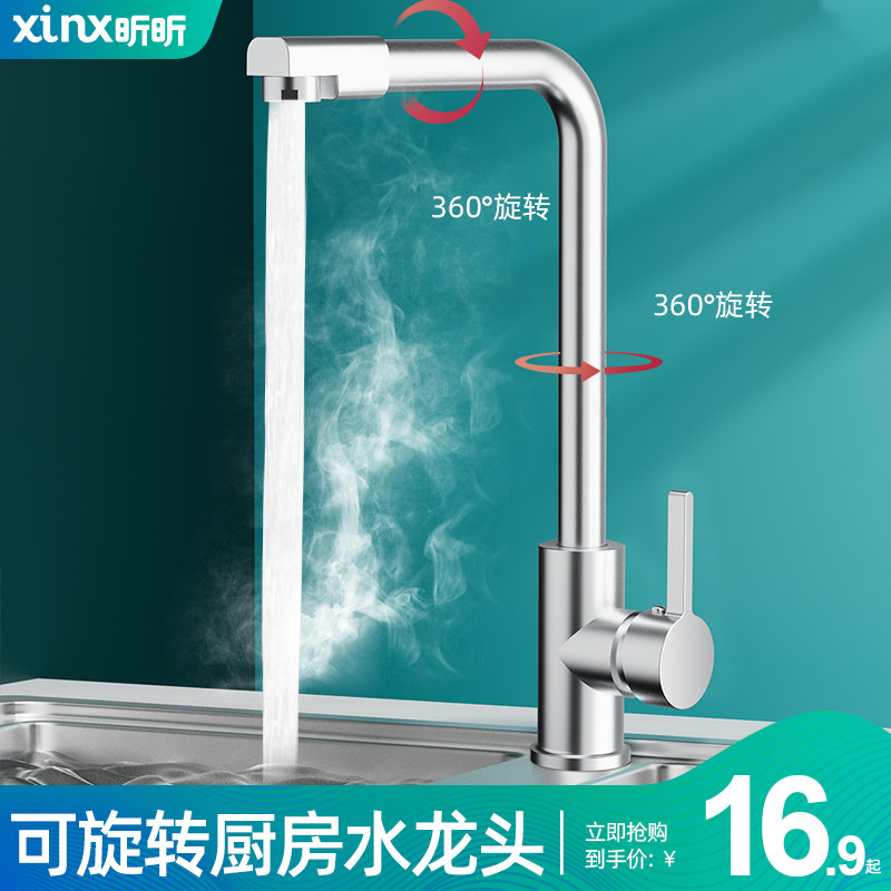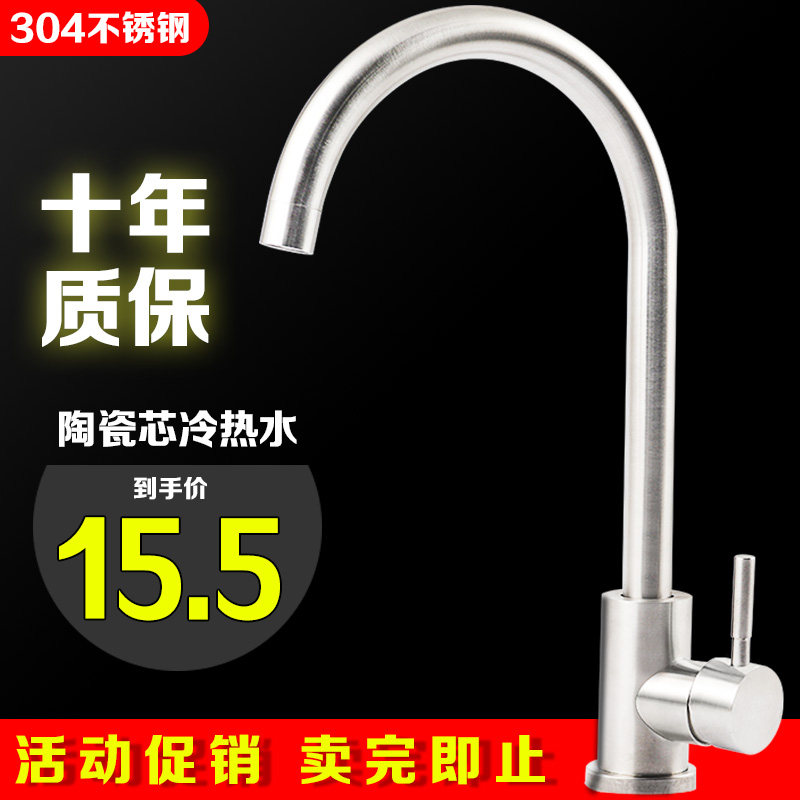 304 不锈钢厨房水龙头冷热水家用旋转防溅水洗菜盆洗手池洗碗冷热