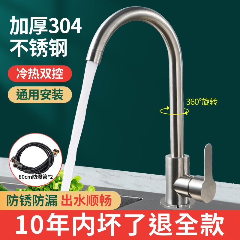 SUS304不锈钢厨房冷热水龙头水槽洗菜盆洗碗池可旋转家用