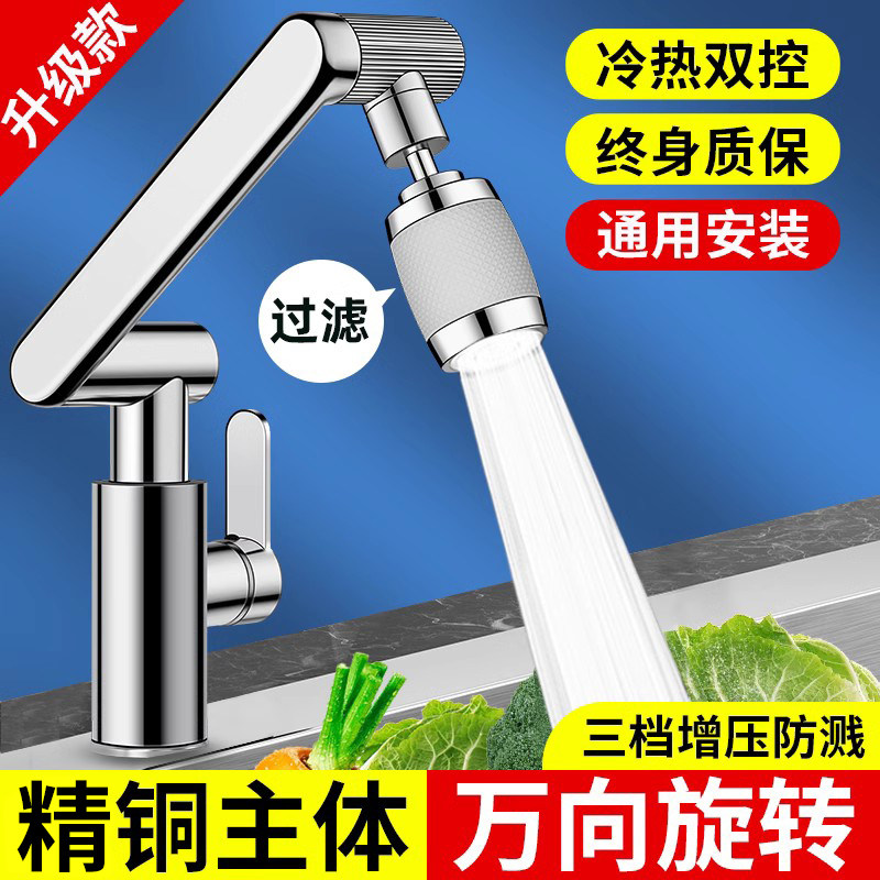 厨房水龙头防溅水全铜洗菜盆洗脸盆水龙头冷热水二合一万向头单冷