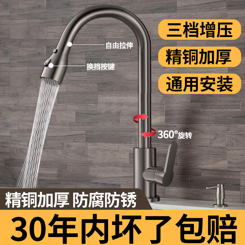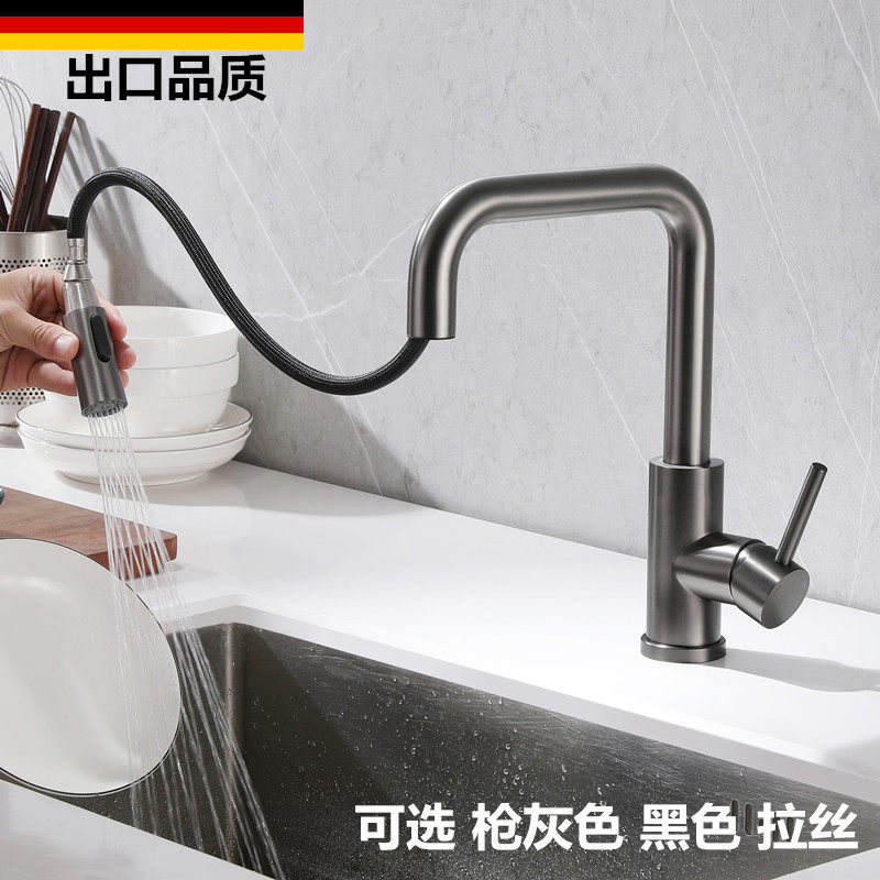 全铜枪灰色厨房水龙头冷热水洗菜盆洗碗池水槽万向抽拉式洗衣池