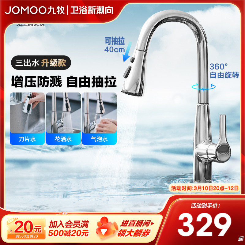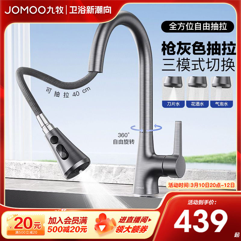 九牧卫浴官方旗舰抽拉式水龙头洗菜盆冷热厨房旋转万向水龙头防溅