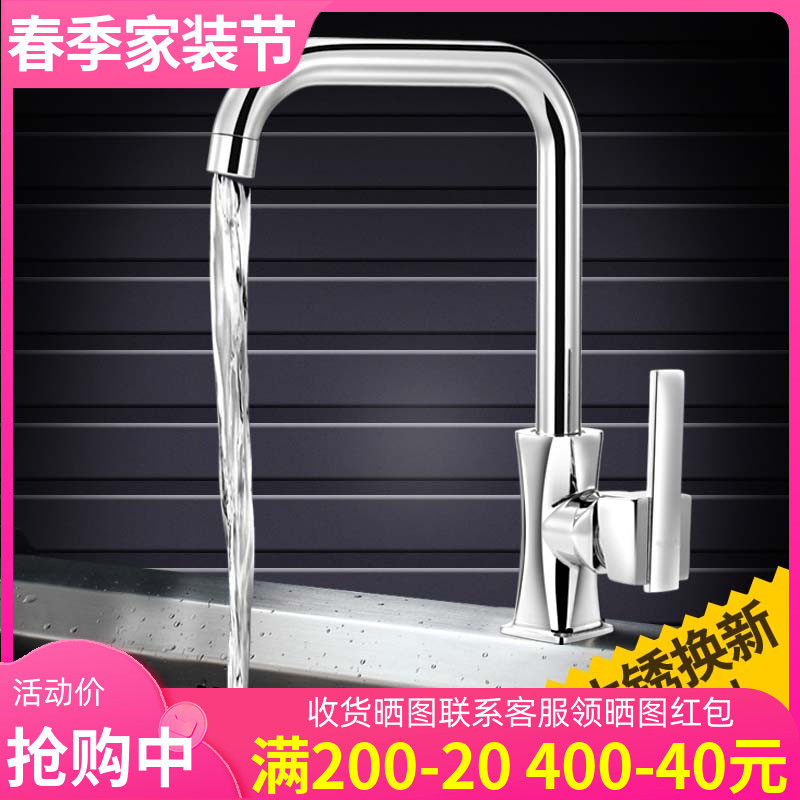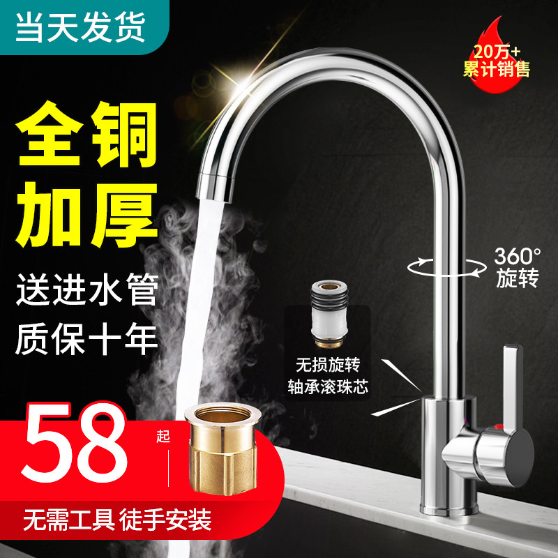 全铜厨房水龙头冷热洗菜洗手盆家用水槽洗碗池不锈钢单冷防溅旋转