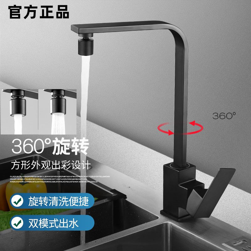 厨房水龙头家用冷热水洗菜盆水槽可旋转黑色七字方形不锈钢铜防溅