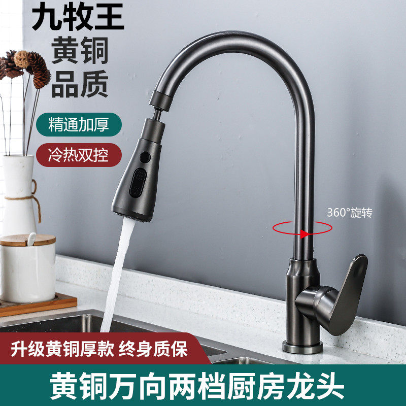 九牧卫浴厨房水龙头抽拉式洗菜盆冷热枪灰色伸缩水槽防溅万向旋转