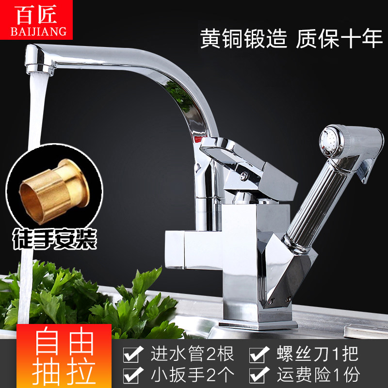 德系铜万向旋转冷热厨房水龙头可抽拉式伸缩洗菜盆水槽洗衣池龙头
