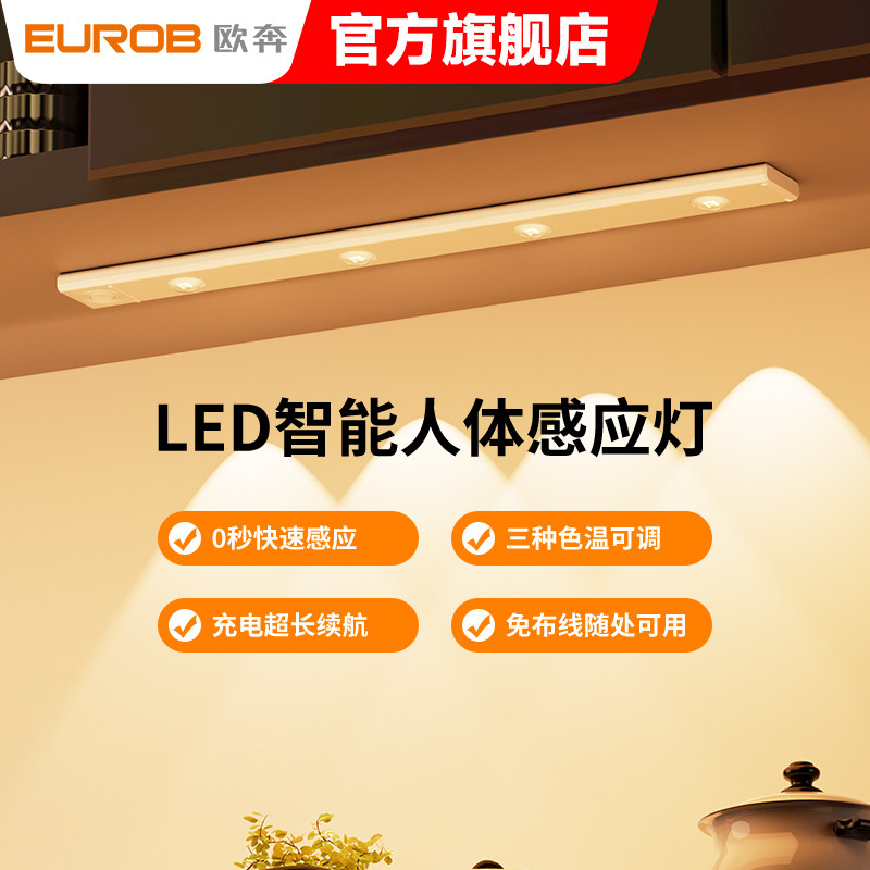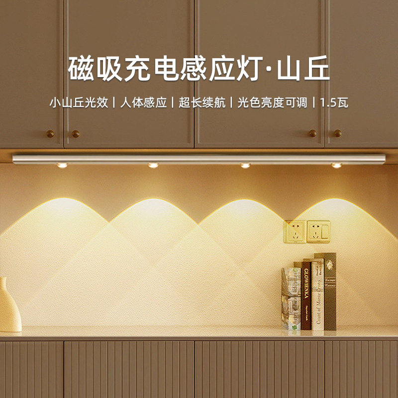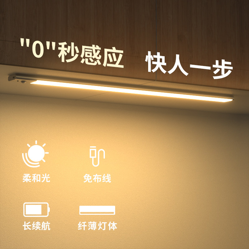 人体感应LED橱柜灯带 充电式智能无线自粘磁吸厨房酒柜衣柜夜灯条