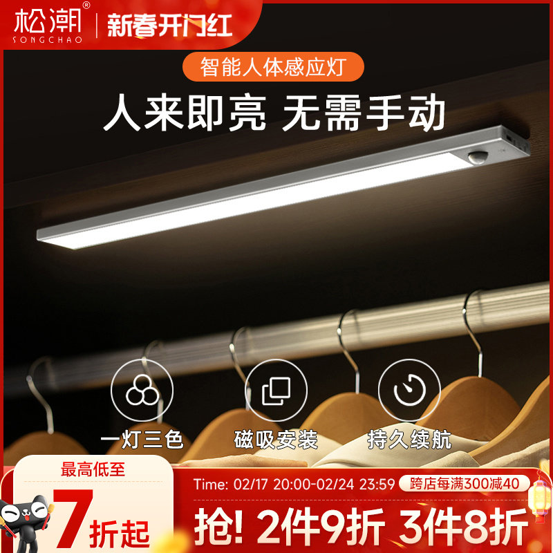 松潮智能人体感应灯带厨房衣柜橱柜宿舍灯带免布线自粘充电灯条