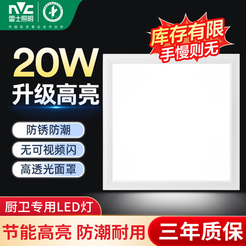 雷士照明集成吊顶灯嵌入式厨房平板灯 led铝扣板卫生间面板厨卫灯