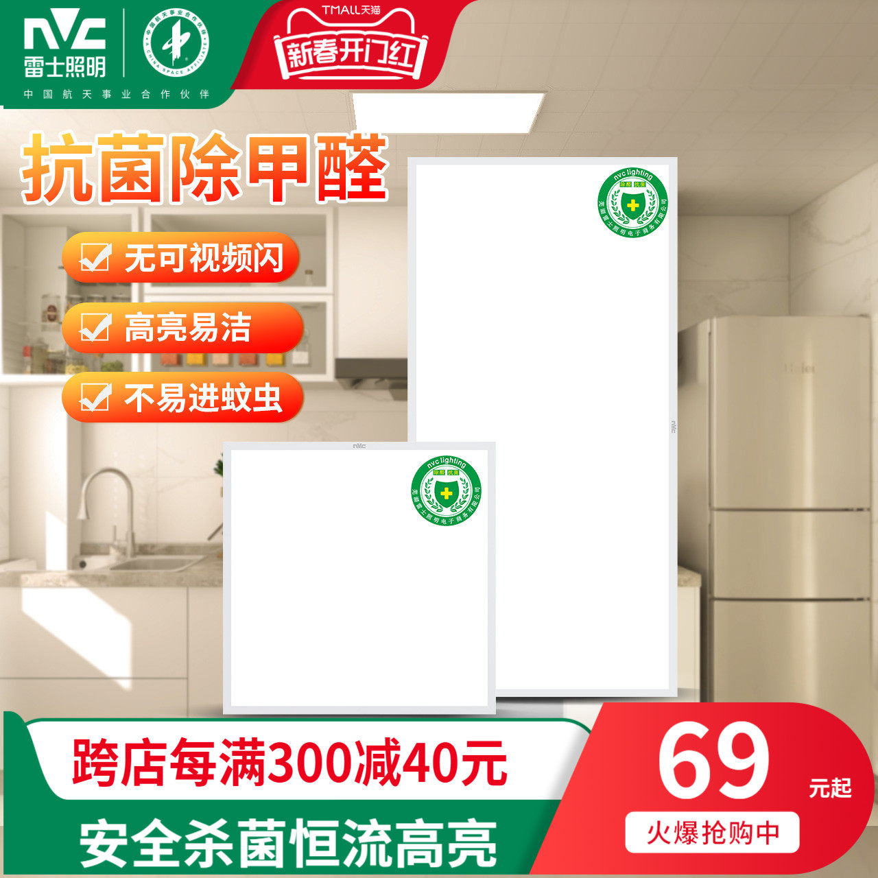 雷士照明集成吊顶嵌入式厨房平板灯杀菌铝扣面板卫生间面板厨卫灯