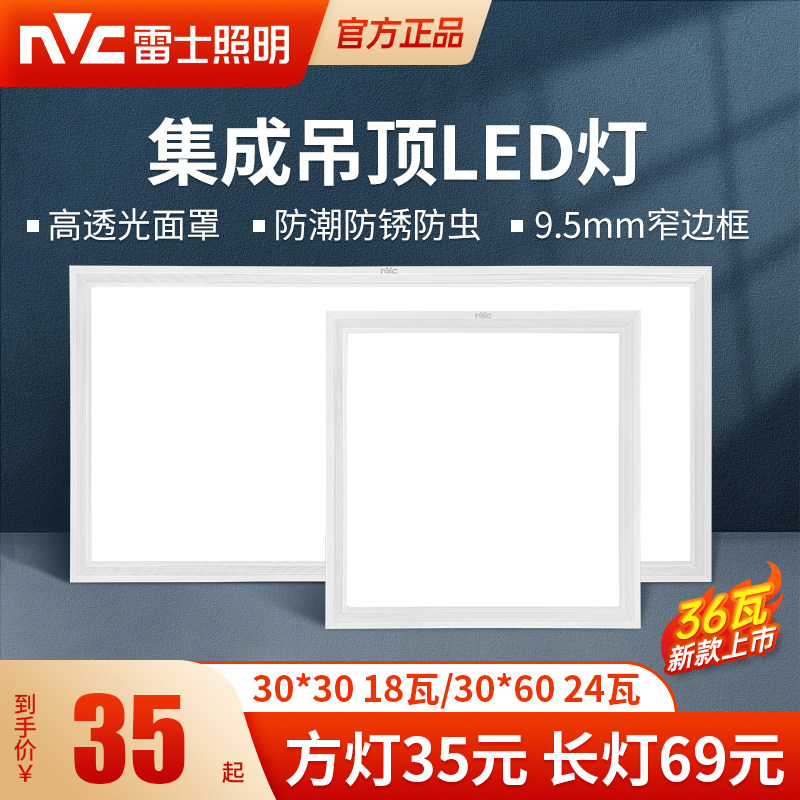 雷士照明led集成吊顶灯家用平板灯300X600厨房卫生间吸顶灯嵌入式