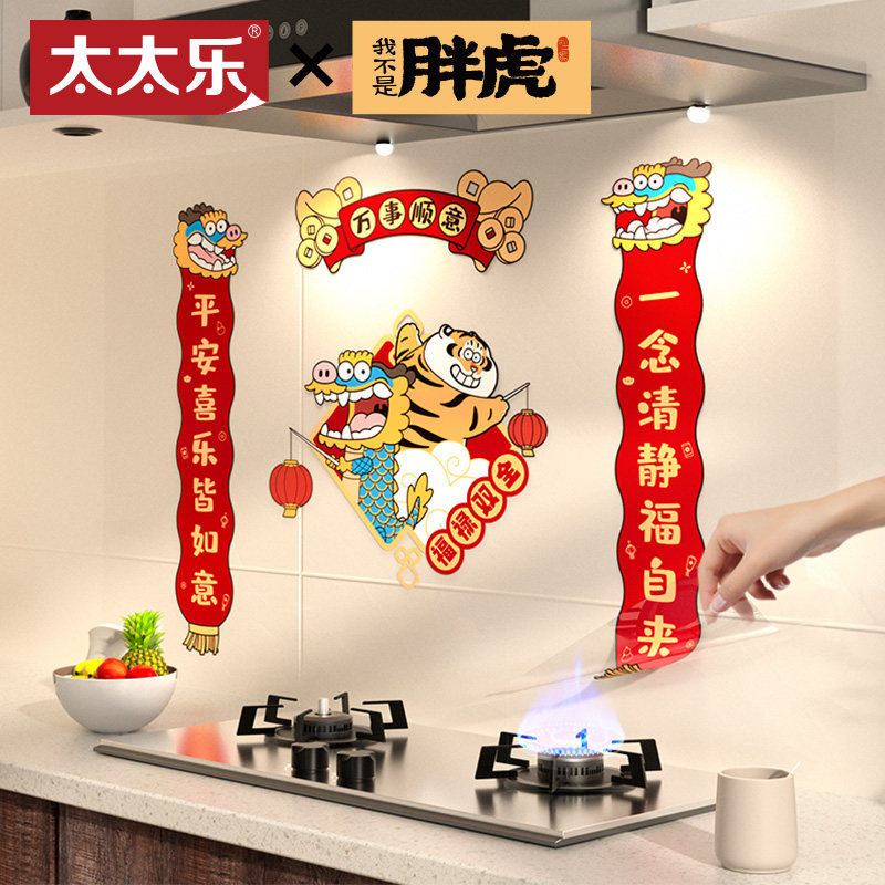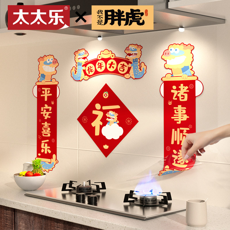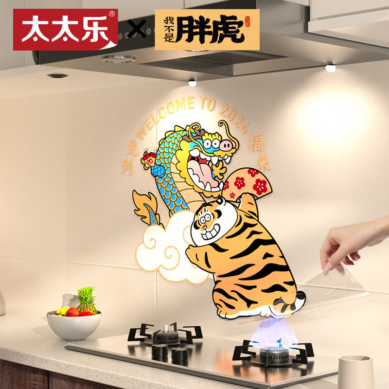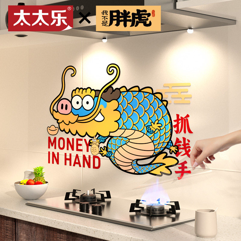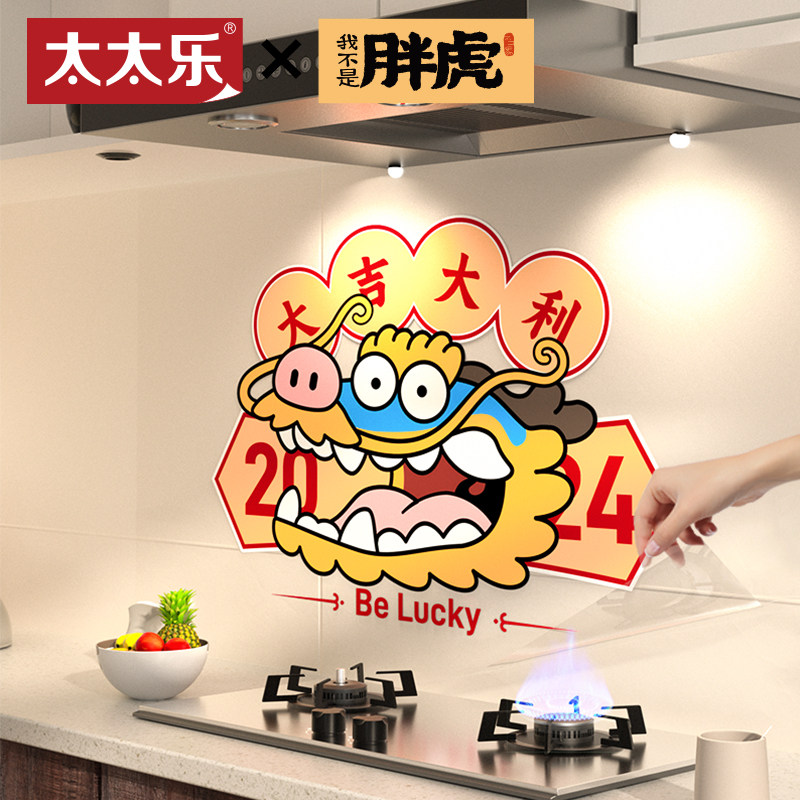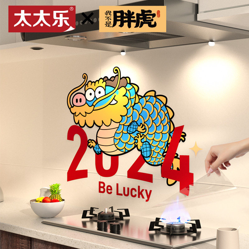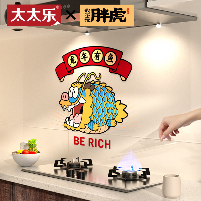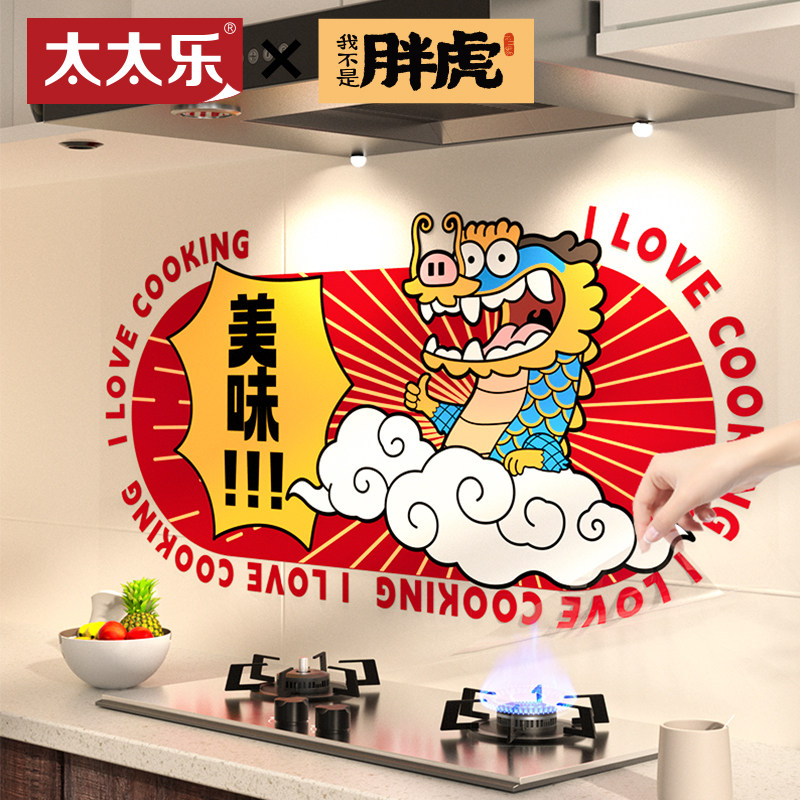 龙年厨房贴纸防油墙纸墙贴装饰防水耐高温灶台贴膜油烟机生龙活虎