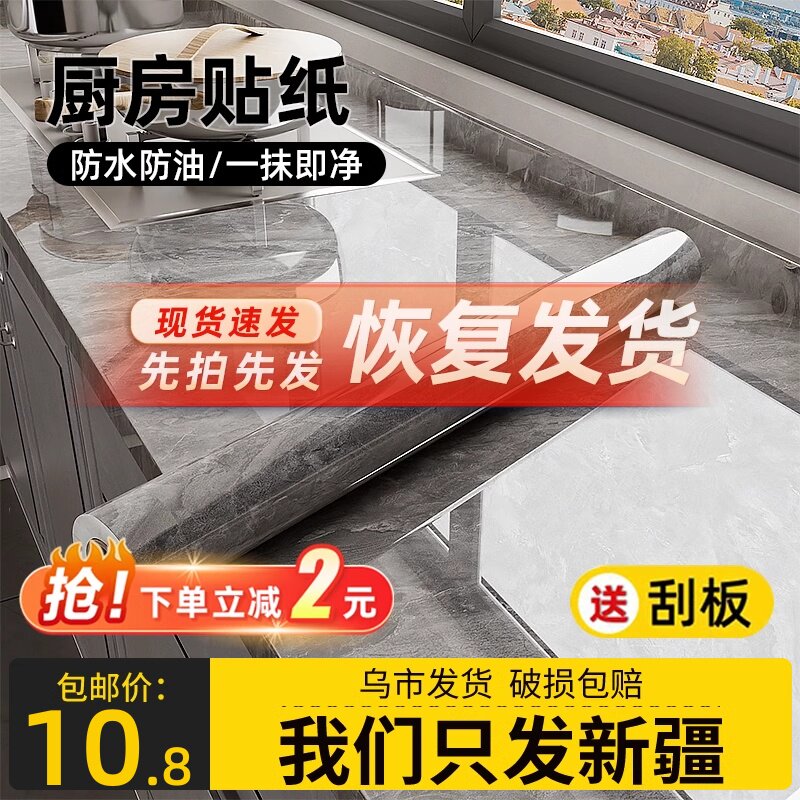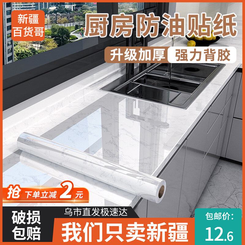 新疆包邮厨房贴纸防水防油自粘墙贴灶台台面瓷砖橱柜子大理石贴膜