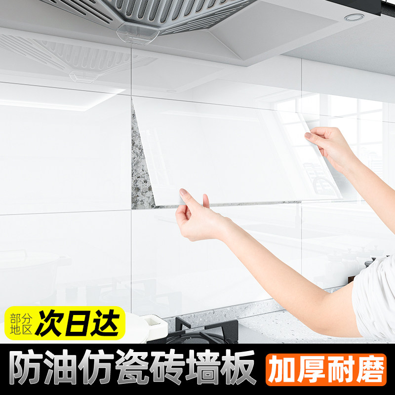 厨房贴纸铝塑板自粘防水防油耐高温仿瓷砖墙贴破损遮丑墙面装饰板