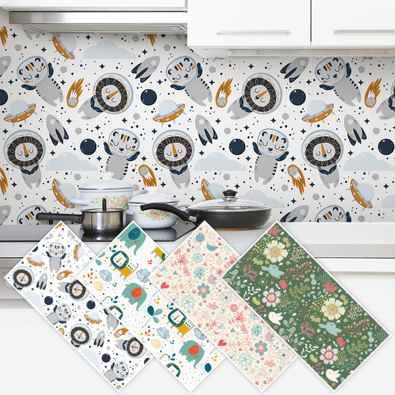 厨房贴纸防油墙纸耐高温装饰自粘墙贴防水防潮贴膜灶台油烟机花朵