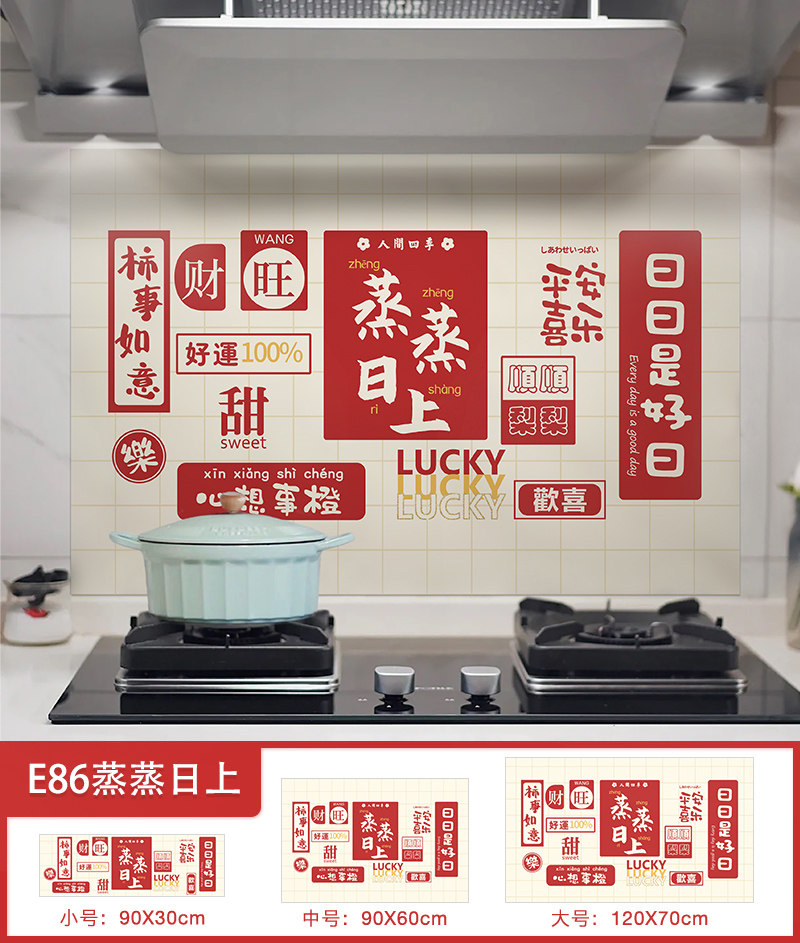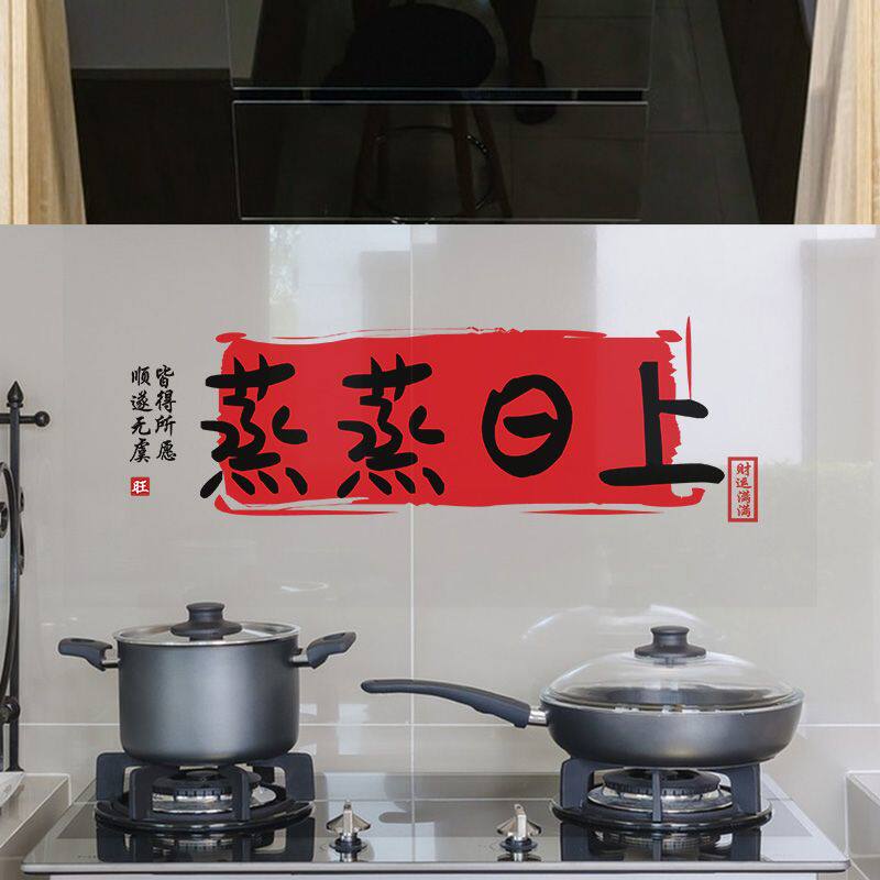 厨房贴纸防油墙纸自粘防水耐高温灶台贴膜油烟机装饰蒸蒸日上遮丑