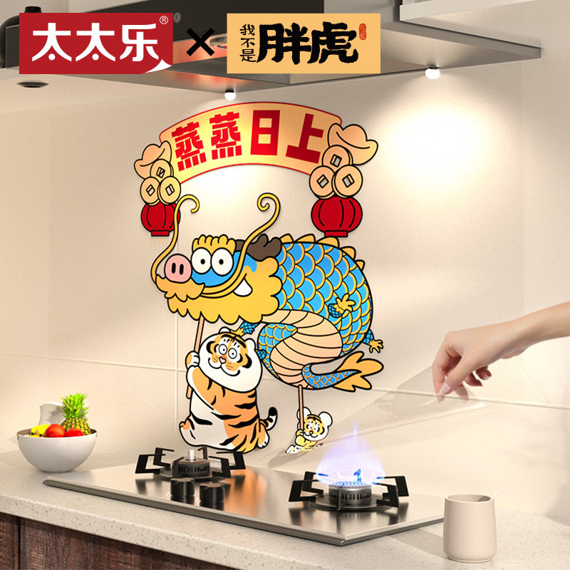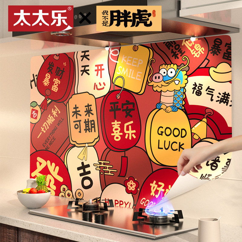 龙年厨房贴纸防油墙纸墙贴装饰自粘耐高温灶台油烟机乔迁蒸蒸日上