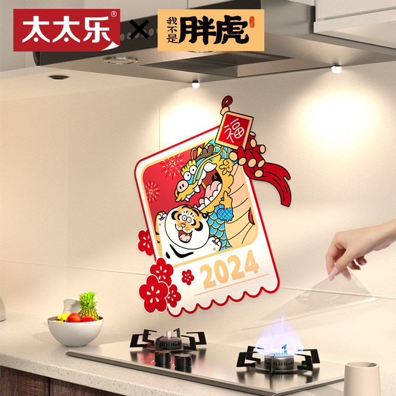 龙年厨房贴纸防油墙纸自粘防水灶台2024装饰布置乔迁之喜遮丑pvc