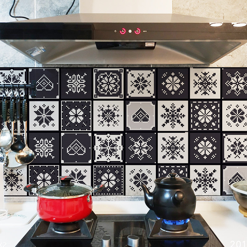 家用厨房贴纸防水防油墙纸自粘温馨卧室墙面装饰瓷砖贴纸防滑地贴