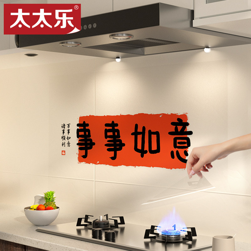 厨房贴纸防油墙纸墙贴装饰自粘防水防潮耐高温灶台油烟机事事如意