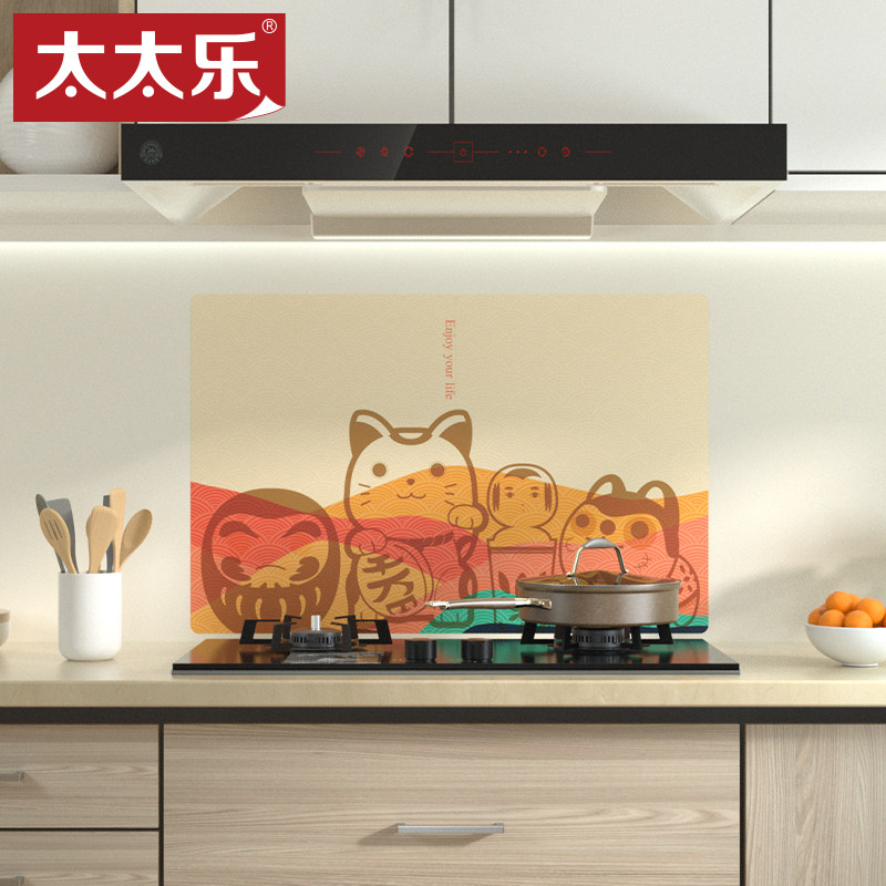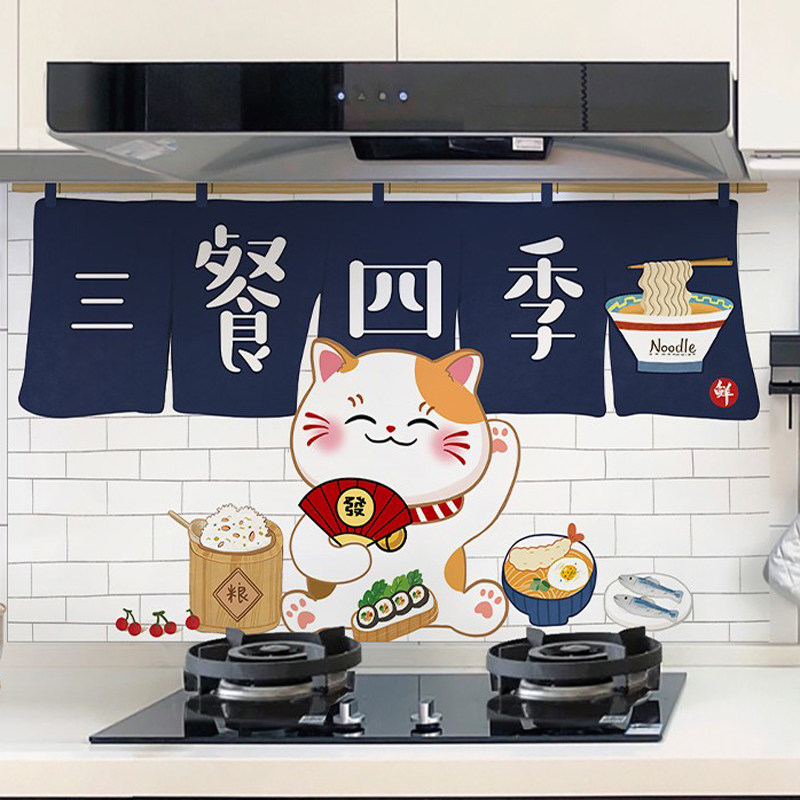 厨房贴纸防油防火阻燃耐高温墙面自粘防水防潮灶台装饰墙贴福气猫