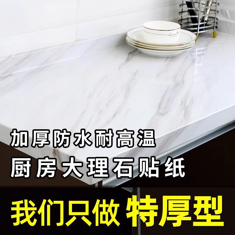 厨房贴纸防水防油自粘墙贴灶台台面瓷砖橱柜子桌面翻新大理石贴膜