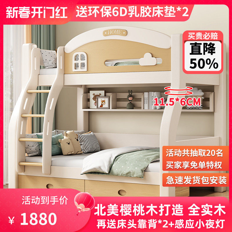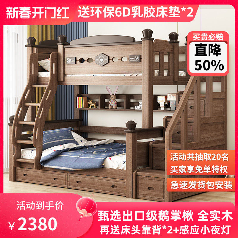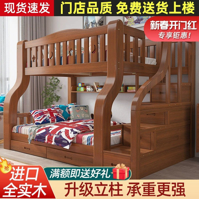 上下床双层床全实木子母床成年多功能双人高低床儿童床上下铺木床