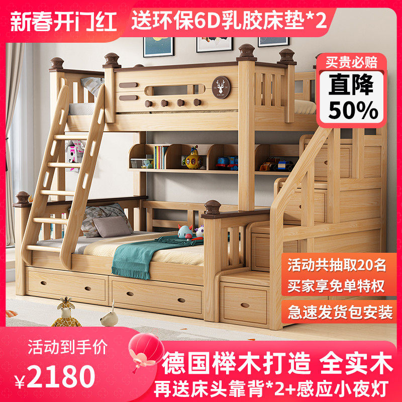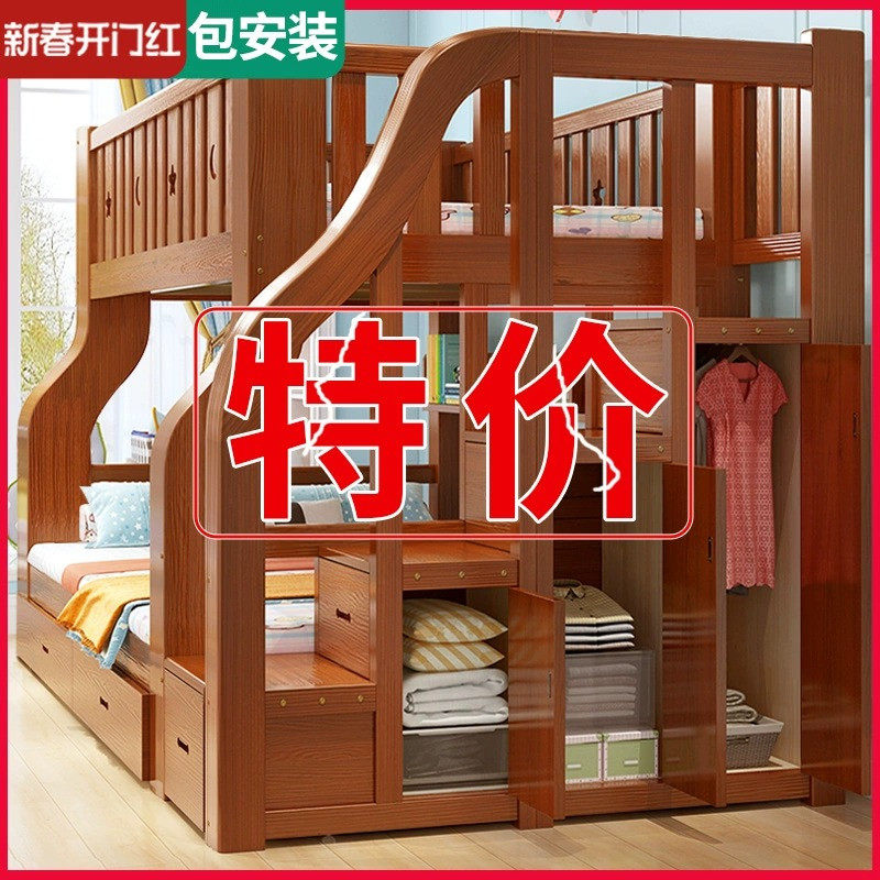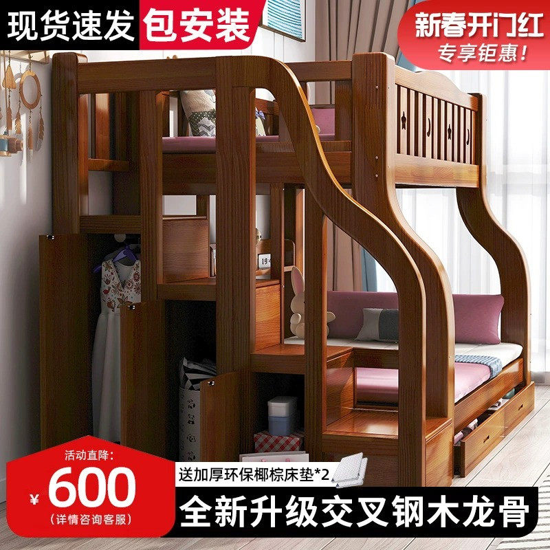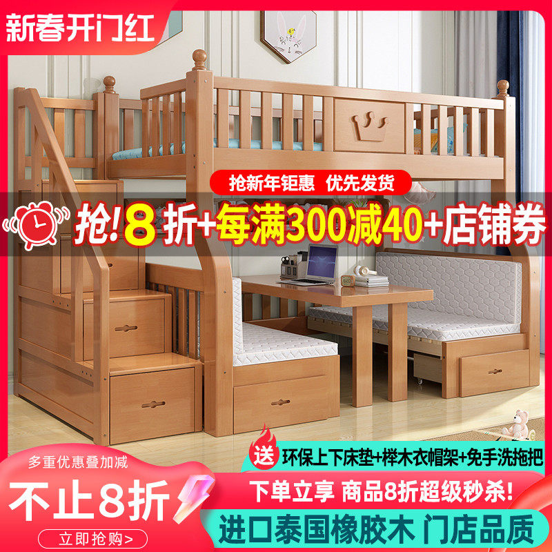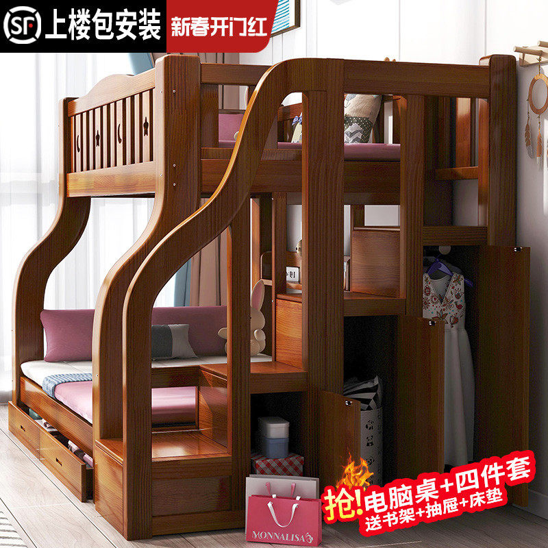 上下床双层床多功能高低床子母床两层全实木儿童床上下铺木床大人