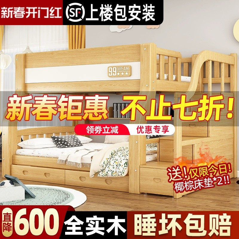 上下床双层床全实木高低床小户型大人儿童床子母床上下铺木床双层