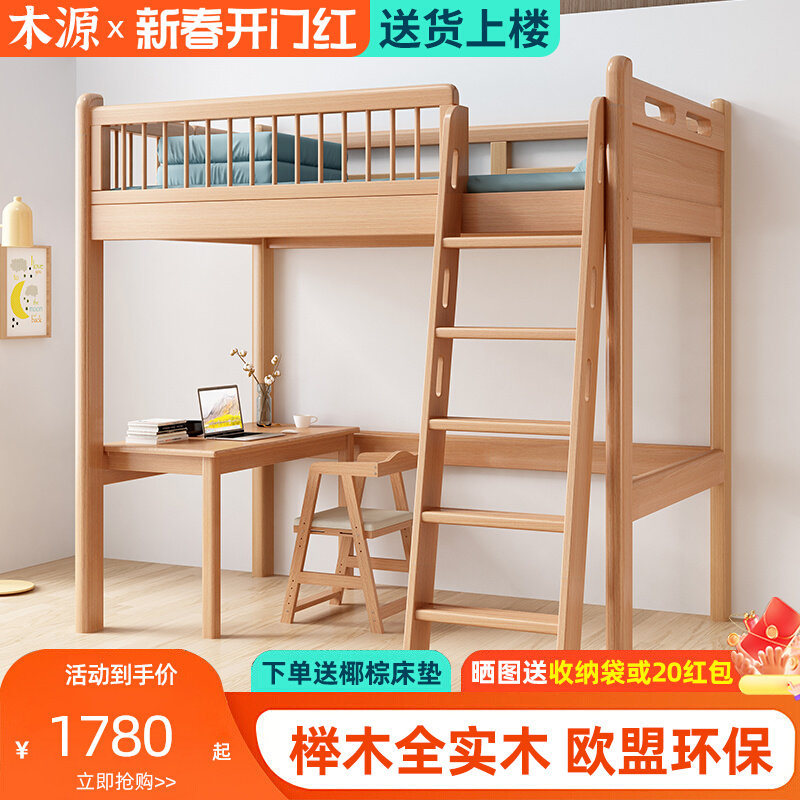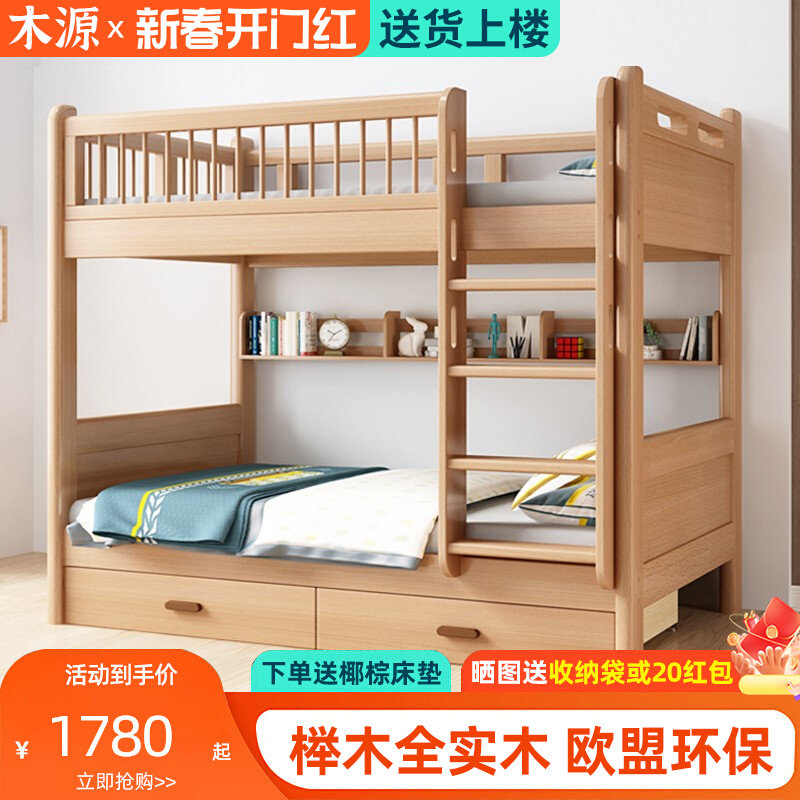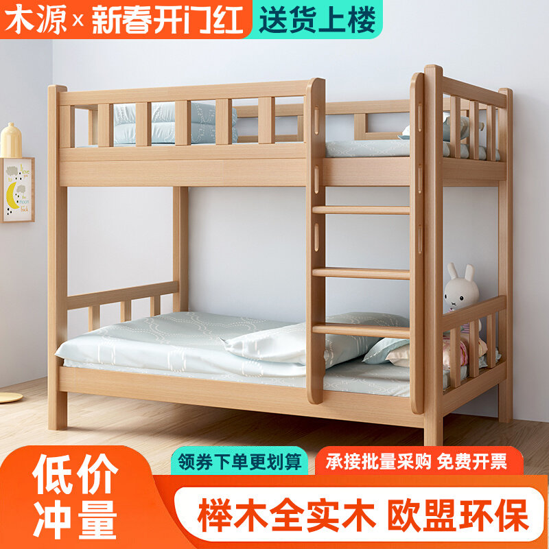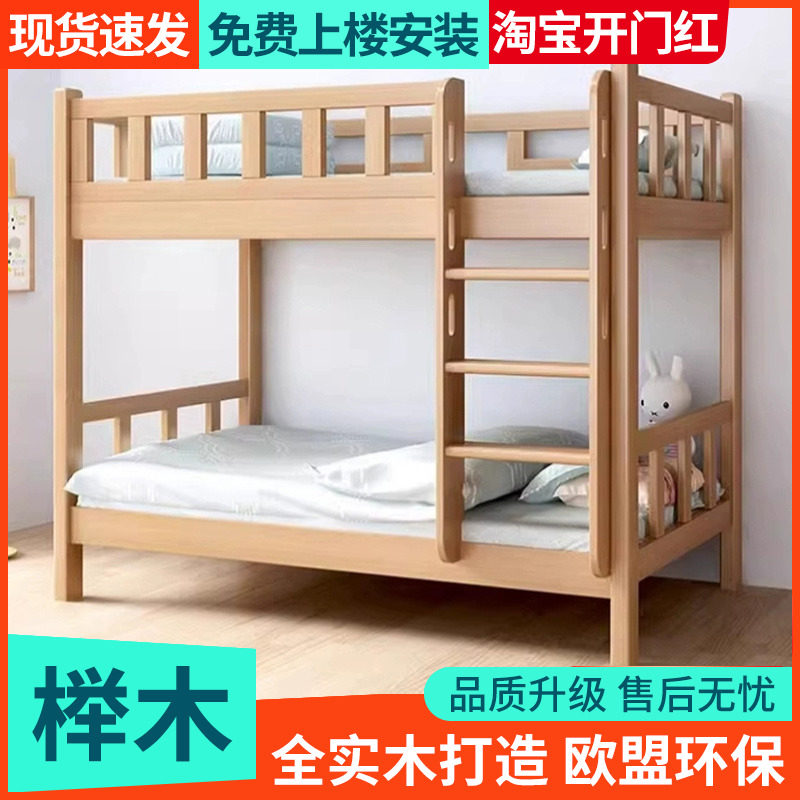 榉木上下床双层床全实木儿童床高低床小户型子母床上下铺木床双层