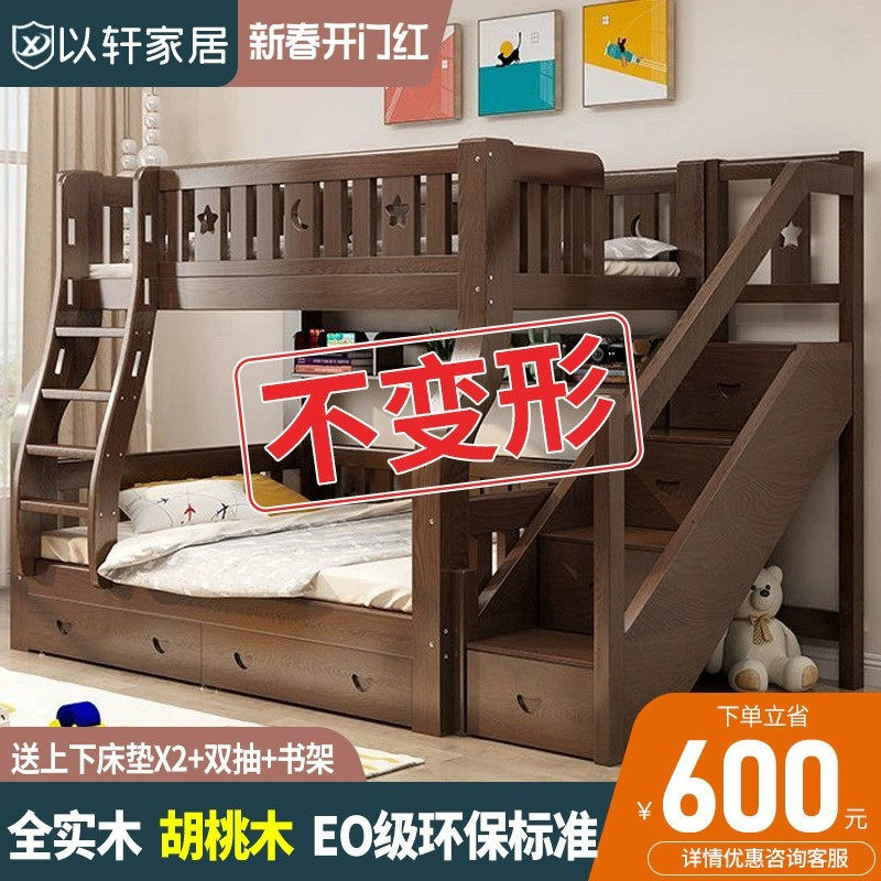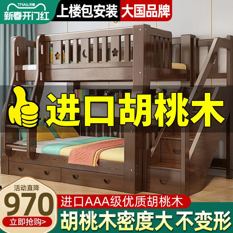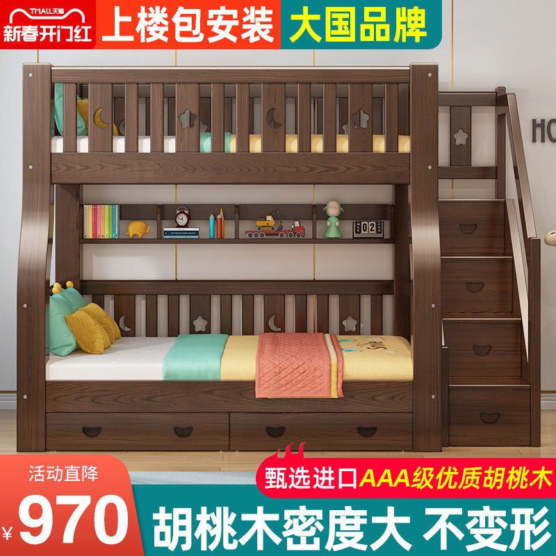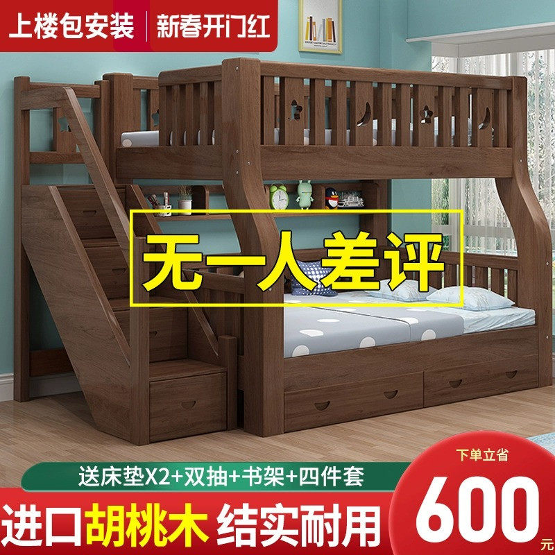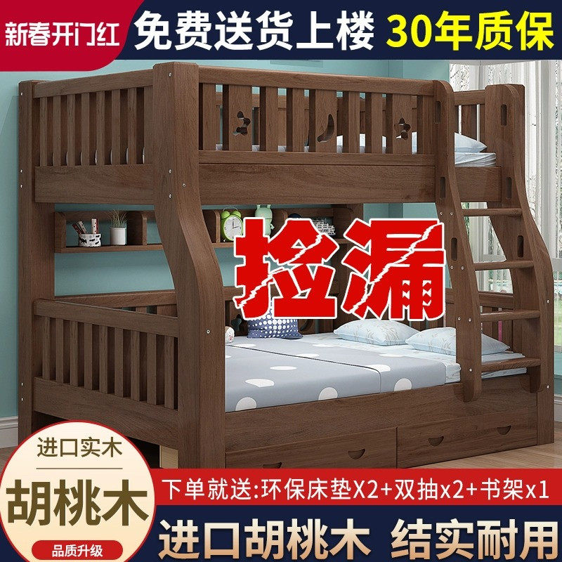 全实木高低床上下铺上下床子母床大人母子两层儿童床胡桃木双层床