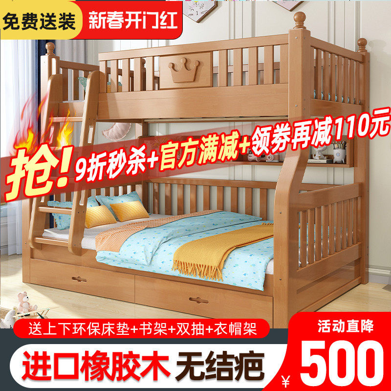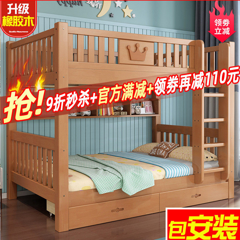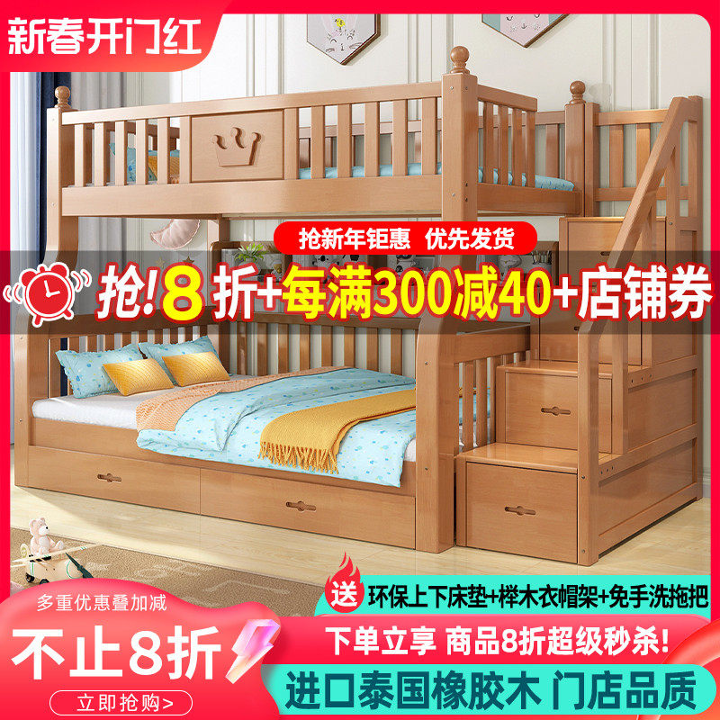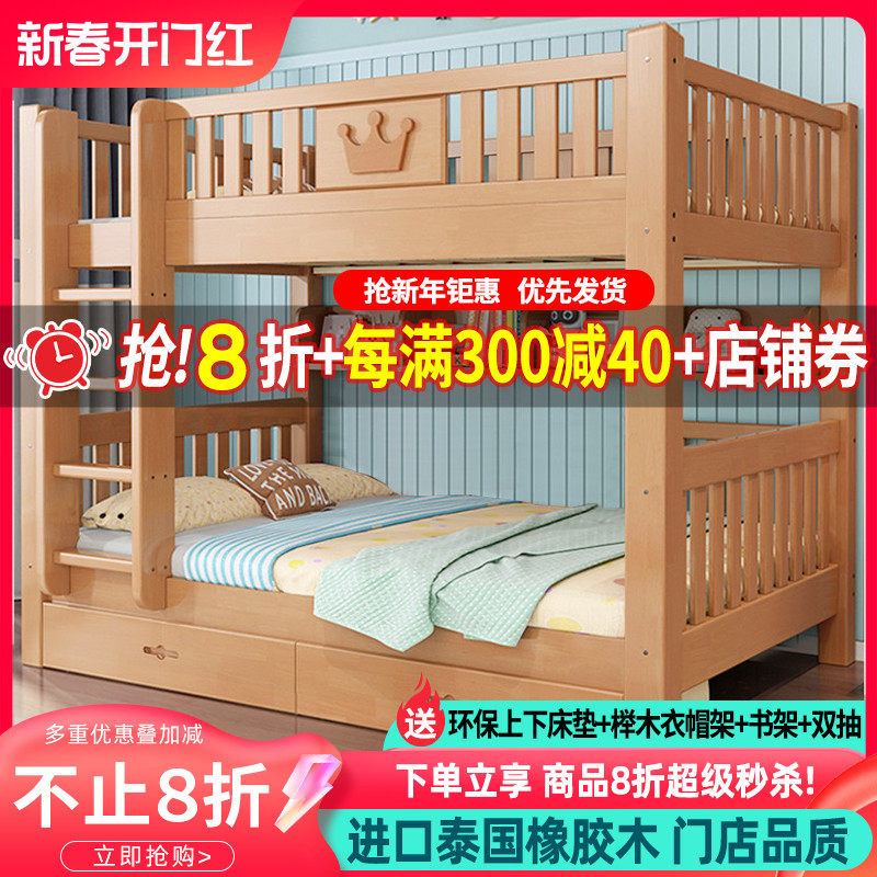 橡胶木上下床全实木上下铺木床双层子母床两层儿童床多功能高低床