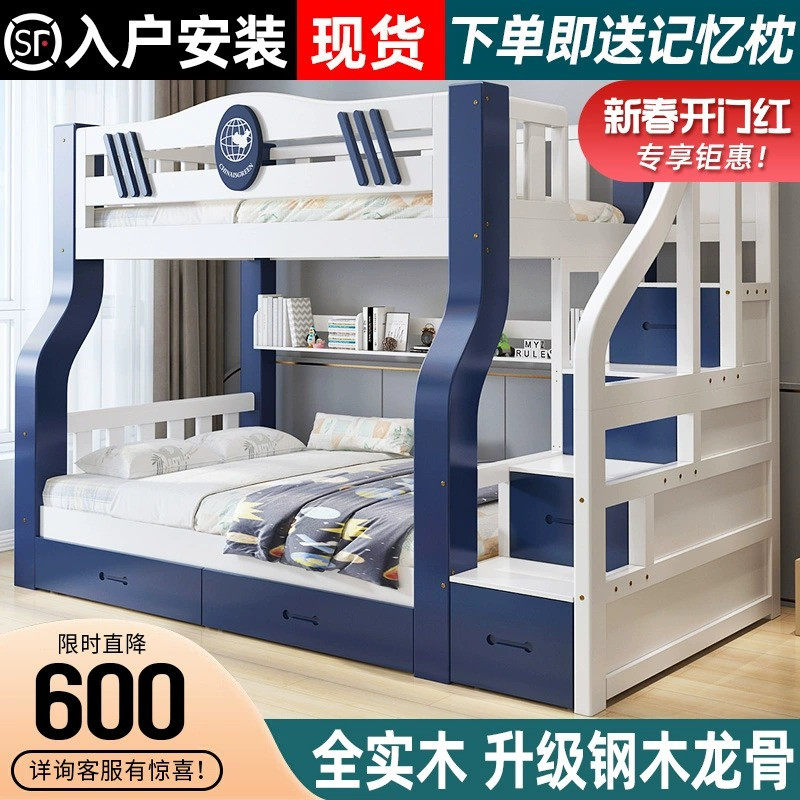 全实木高低床上下床儿童上下铺双层床小户型上下同宽子母床高低床