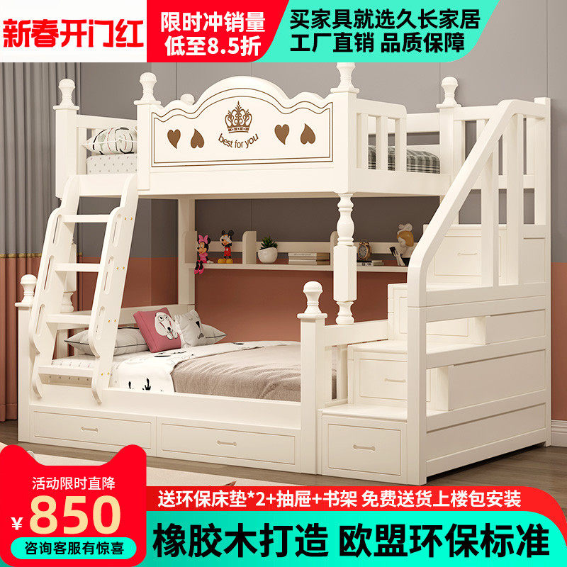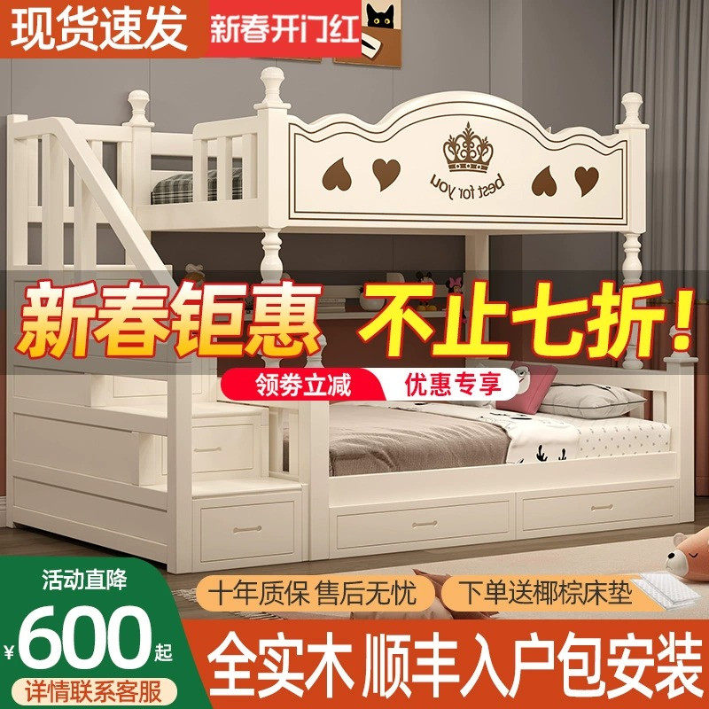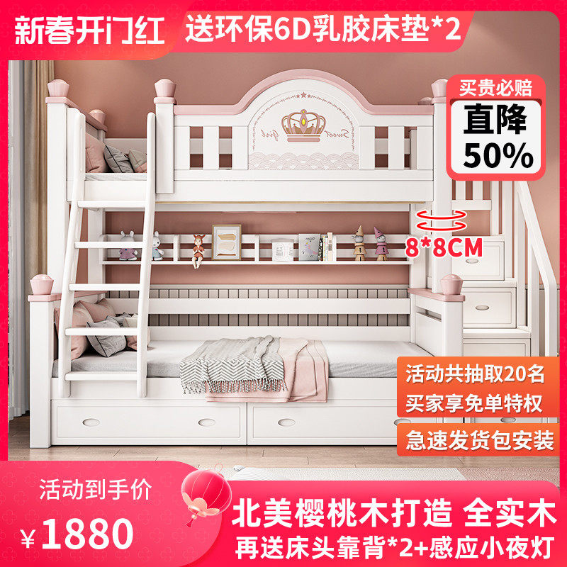上下床双层床全实木高低床小户型女孩公主子母床上下铺木床儿童床