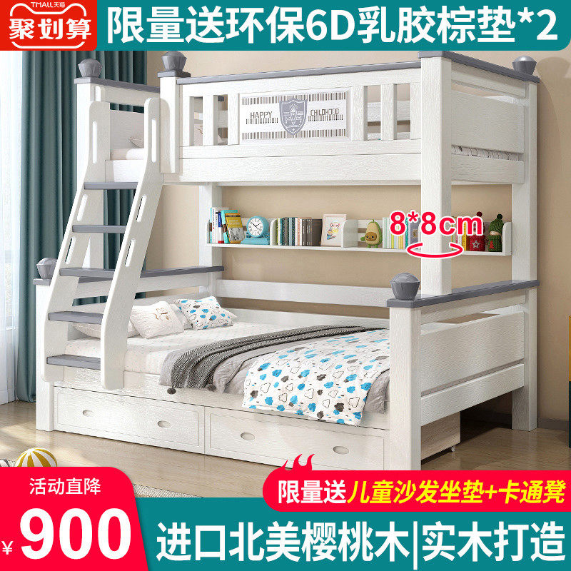 全实木高低床上下铺双层床子母床多功能两层组合儿童床上下床木床