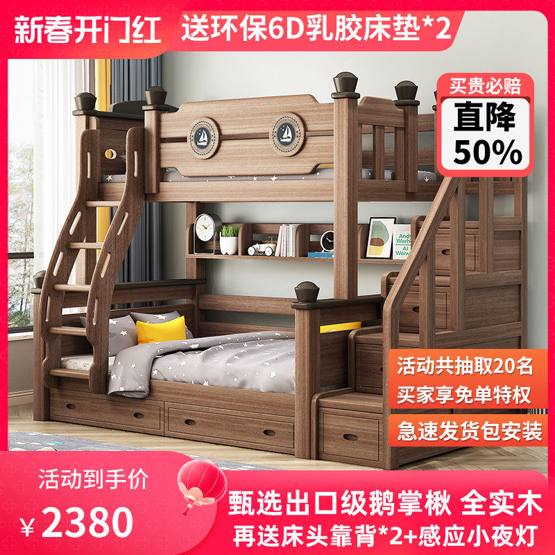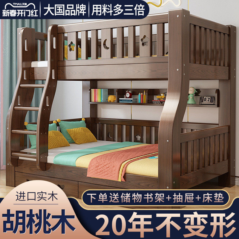 胡桃木两层儿童床子母床上下床双层床大人家用高低床双人铺木床